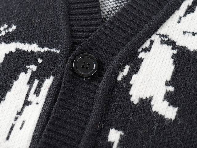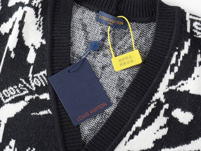 Special Price 100 RMB, Original Price 190 RMB Remaining Stock: Xs 8 S 5 M 3 L 4 Special Price - No Returns or Exchanges, Please Do Not Purchase if You Mind 1V New Thistle Pattern Jacquard Cardigan This wool cardigan captures the romantic atmosphere of spring and summer with its thistle pattern, presenting a striking look with jacquard knitting. It also subtly incorporates the handwritten Louis Vuitton logo, providing a warm and comfortable layering option for the cold winter. Made with German-imported T?rl 14-needle 4-system machine, each piece takes 330 minutes to knit. The sturdy and heavy garment features an additional 4-needle 6-thread knitting process, completely abandoning traditional sweater construction. Unisex. Sizes: Xs S M L D