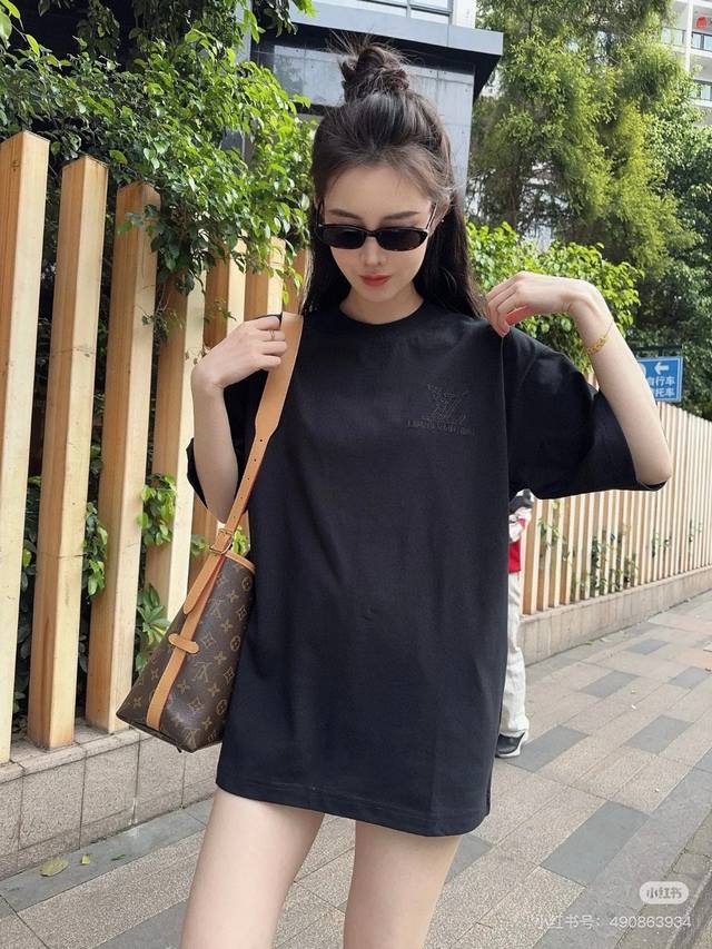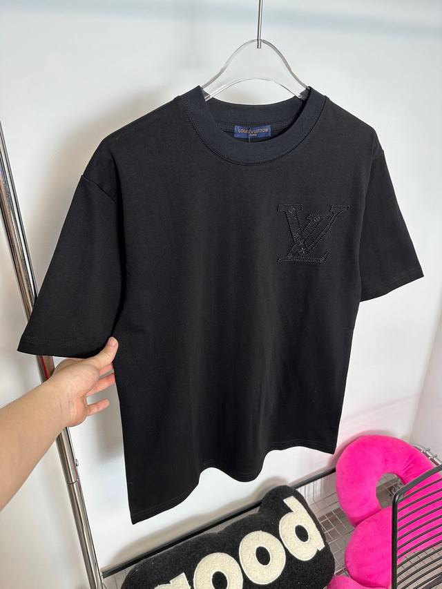 Lv Louis Vuitton classic Logo double process ten thousand needle precision embroidery short-sleeved T-shirt