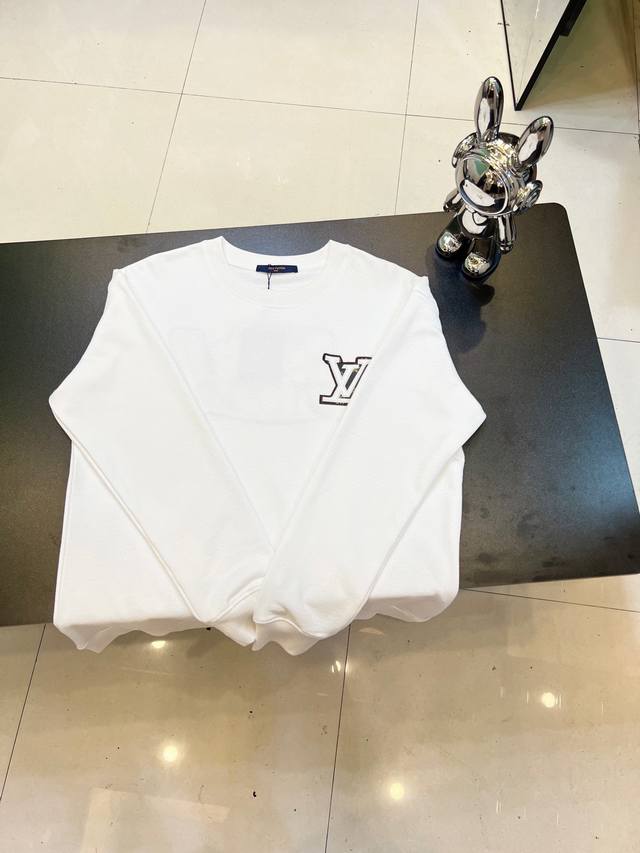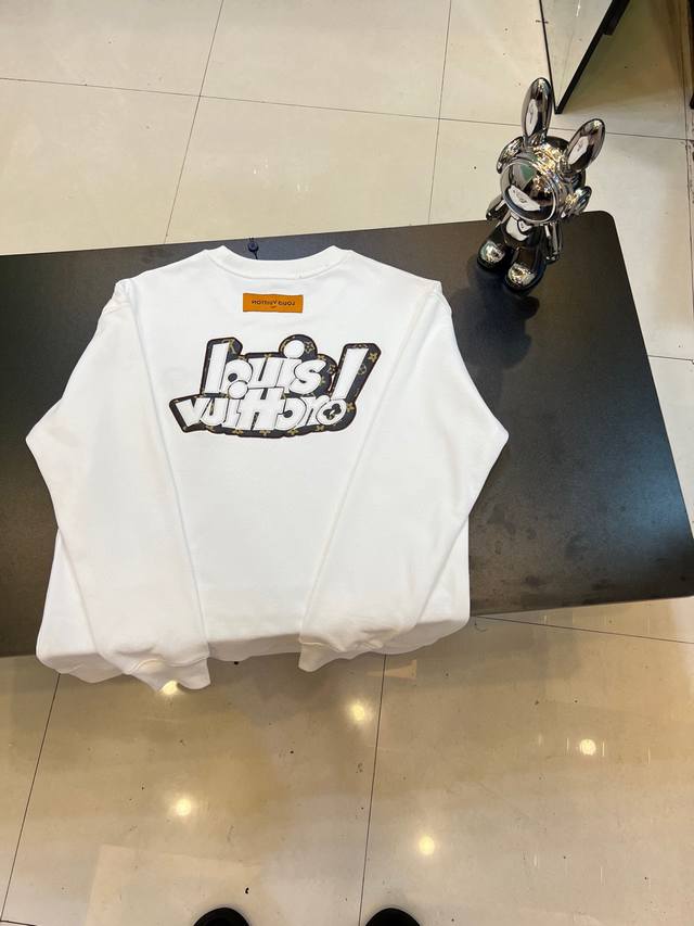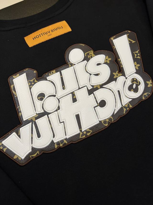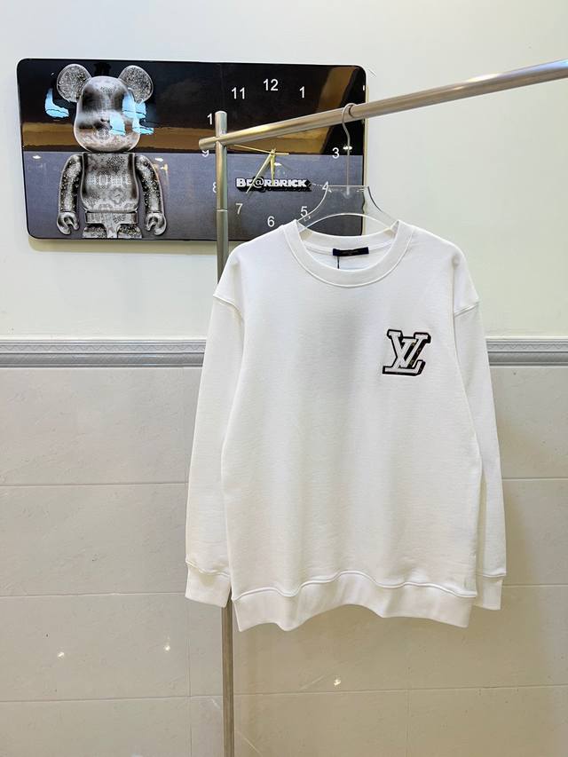 Style No.: 0009 Louis Vuitton Leather Label Crew Neck Sweatshirt. Made with 460g pure cotton terry cloth, the entire process, from fabric to accessories, took over twenty days. The leather label alone took more than a week to select, all to ensure high-end quality. Attention to detail is paramount; the fabric feels crisp yet is soft and comfortable against the skin. All three labels are complete, identical to those in boutiques! Colors: Black, White. Sizes: S-XL.