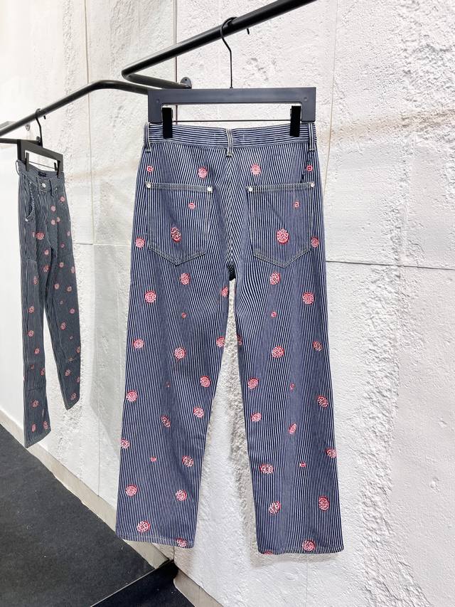Style No.: H990 Louis Vuitton X Nigo Collaboration Fw25 Cherry Blossom Embroidered Cargo Pants. Top-tier quality. Different washes create a flattering look for both slim and thick legs. The straight-leg, slim-fit design is incredibly flattering and the timeless length makes it easy to style. A wardrobe essential! The fabric is both structured and soft against the skin, and the washing process is superb. A must-have! Complete with wash, hangtag, and label. Color: As pictured. Sizes: 30, 32, 34, 36.