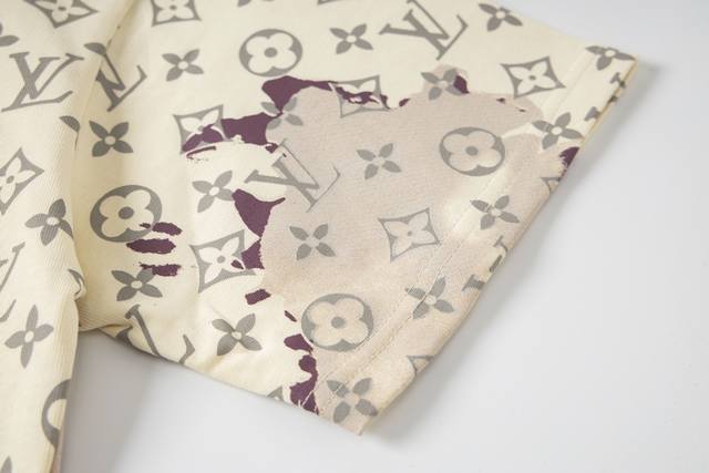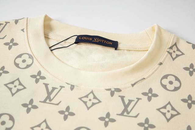Style No.: M072 Louis Vuitton LV 2025 New Flaming Cloud Jacquard Graffiti All-over Print Crew Neck Short Sleeve T-Shirt - The fabric is made of 320G 100% pure cotton double yarn, dyed in the same vat, and specially thickened 32-count double-ply 1X1 ribbed pure cotton fabric, ensuring comfort while being breathable and cool without being see-through! The fabric is stylish and elastic without being tight, suitable for daily commuting and sports. - The shoulders use double needle stitching and cross-stitching, and the back neckline uses pure cotton ties to improve the comfort of the back of the neck. The fabric surface is clean, the texture is clear, and it is soft and comfortable. - All custom-made original accessories, hangtags, washing instructions, main label, and moisture-proof paper are all provided. This bag features a relaxed, drop-shoulder design. Unisex. Louis Vuitton, a brand under the French LVMH Group, is a renowned luxury handbag and leather goods brand with over a century of legendary classic appeal, a sophisticated symbol of global fashion travel art. The canvas bag with the distinctive "LV" logo, featuring an interwoven monogram pattern, has become a fashion classic thanks to its rich legendary history and elegant design. Continuing to this day, whether it's the leather goods, scarves, watches, pens, or clothing that have been extended to this day, they all adhere to the "travel philosophy" of emphasizing refinement, quality, and comfort. Colors: Beige, Black. Sizes: S-XL.