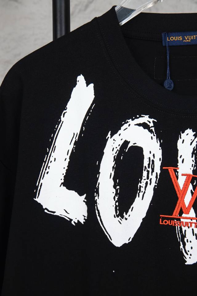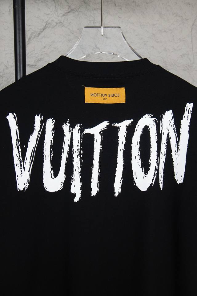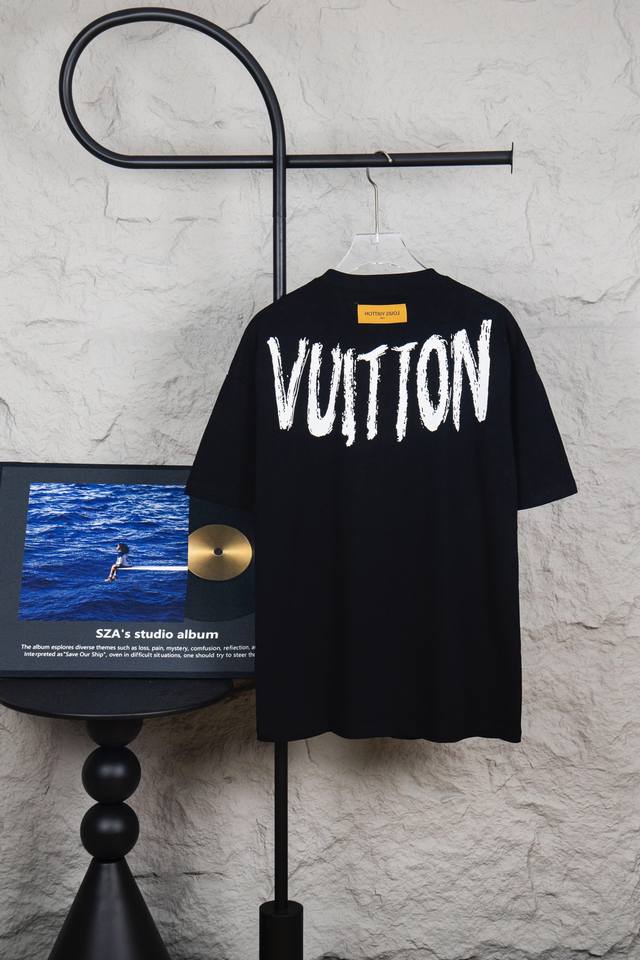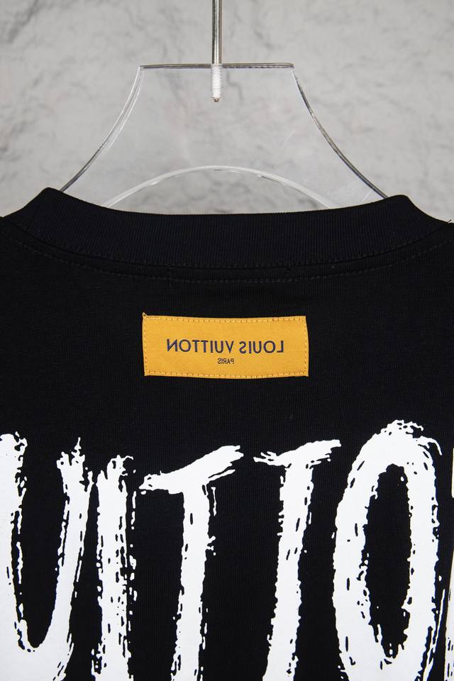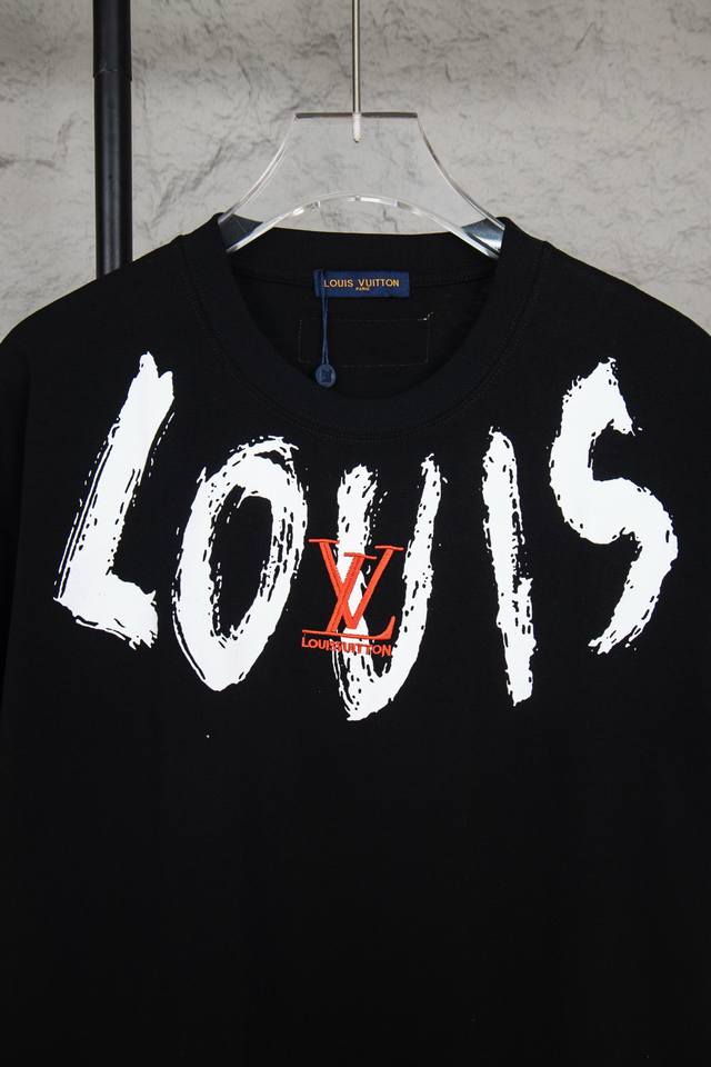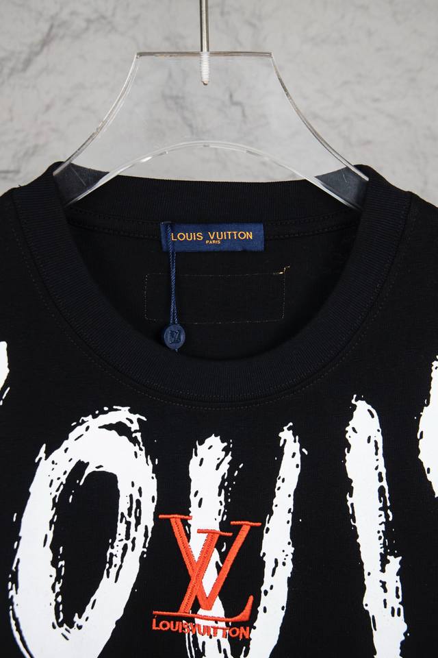 Style No.: M101 Louis Vuitton Crew Neck Short Sleeve T-Shirt with Classic Embroidered Necklace Letters on Chest. Fabric: 300g Heavyweight Pure Cotton. Made with a specific heavyweight 32S fine cotton plain knit fabric, 300g; paired with 32S+70D stretch ribbing 320g: 95% fine cotton * 5% spandex double yarn ribbing. The fine cotton material is lightweight and breathable, with a strong cotton feel, and excellent breathability and moisture absorption. The ribbing uses a blended process to weave a combed cotton fabric, making the fabric very soft to the touch. The fine cotton material is lightweight and breathable, with a strong cotton feel, and excellent breathability and moisture absorption; it does not wrinkle easily and requires no special care. The ribbing uses 32-needle high-end textiles and 70D ultra-fine elastic thread, with almost imperceptible stitching, providing a comfortable and form-fitting fit. Ddd Full set of new Louis Vuitton accessories Ddd Unisex Ddd Different from other versions on the market, feel free to compare Ddd Colors: Black, White Ddd Sizes: S-XL DDD