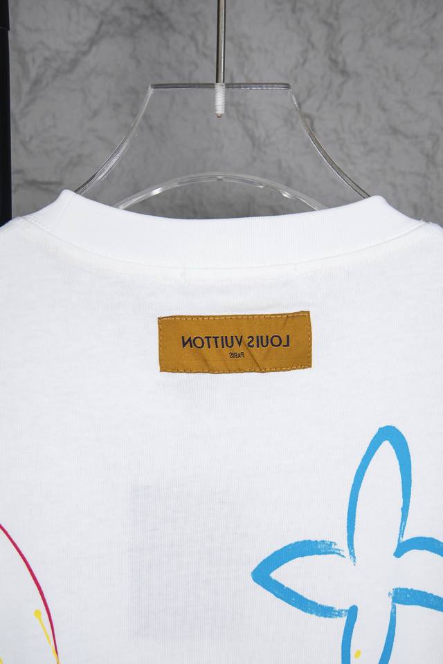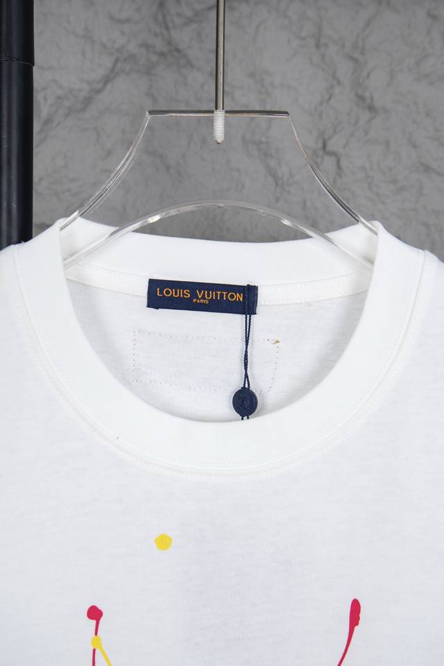 Style No.: M161 Louis Vuitton 2025 New Dopamine Colorful Graffiti Print Short-Sleeve Crew Neck T-Shirt. Made of 320g 100% pure cotton double-yarn fabric, specially thickened 32-count double-ply 1X1 ribbed pure cotton, ensuring comfort, breathability, and coolness while remaining opaque! The fabric is stylish, elastic, and not tight, suitable for daily commutes and sports. - Double-needle stitching on the shoulders and a pure cotton drawstring at the back neckline enhance comfort. The fabric is clean, with a clear texture, soft and comfortable. - All original accessories, hangtags, washing instructions, main label, and moisture-proof paper are included. This bag features a relaxed, drop-shoulder design. Unisex. Louis Vuitton, a brand under the French LVMH Group, is a renowned luxury handbag and leather goods brand with over a century of legendary classic appeal, a sophisticated symbol of global fashion travel art. The canvas bag, featuring the distinctive "LV" logo, has become a fashion classic thanks to its rich history and elegant design. Continuing to this day, its derivatives