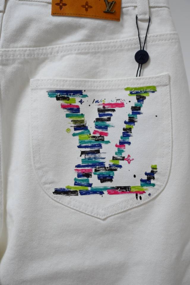 Style No.: M2167 Louis Vuitton Ss25 Pocket Cartoon Print Straight Leg Jeans, Unisex. Top-tier quality. Different washes create a flattering look for both slim and thick legs. The straight, slim fit is flattering and the perfect length is timeless. Easy to style and versatile, a wardrobe essential! The fabric is both structured and soft against the skin, and the washing process is superb. A must-have! Complete with all tags, labels, and tags. Color: White. Sizes: 28, 30, 32, 34, 36.