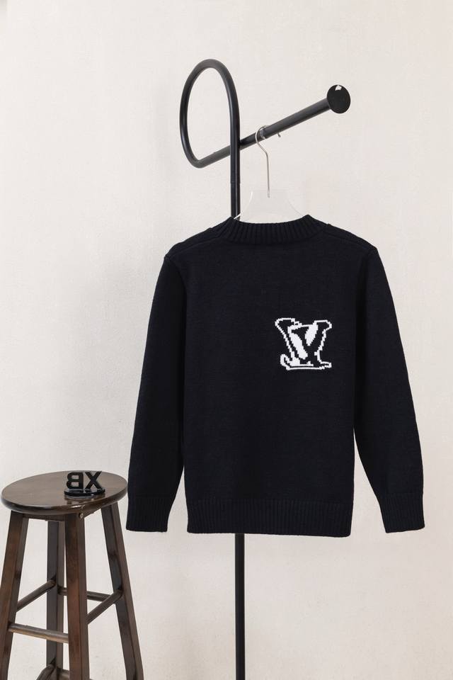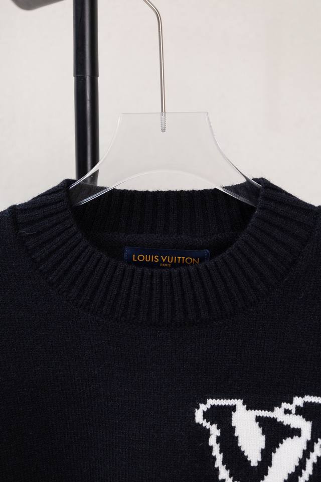 Style No. X348 Black and White Louis Vuitton Logo Embroidered Crew Neck Sweater. Complete with boutique packaging and labels, distinguishable from market counterfeit goods. Suitable for couples; colorfast, pill-resistant, shrink-resistant, comfortable and breathable fabric. Made with custom-dyed, high-weight original wool blend yarn, high-quality pure cotton 14S fine knit fabric, woven on a German imported jacquard machine. Environmentally friendly, color-fixed, and custom-dyed fabric requires fine yarn and extremely high-quality raw cotton. Oversized fit, fits up to 200cm. Original matching accessories 1:1. High-end craftsmanship of the main label. Colors: White, Black. Sizes: S -XL.