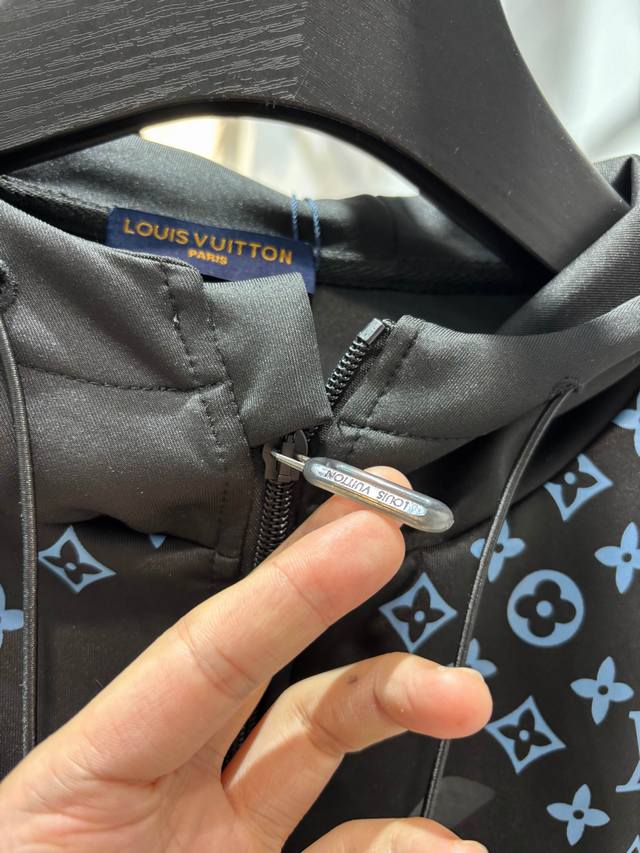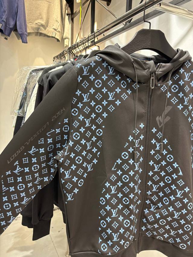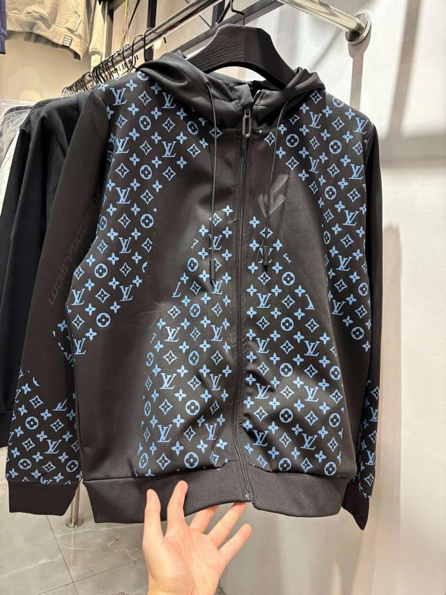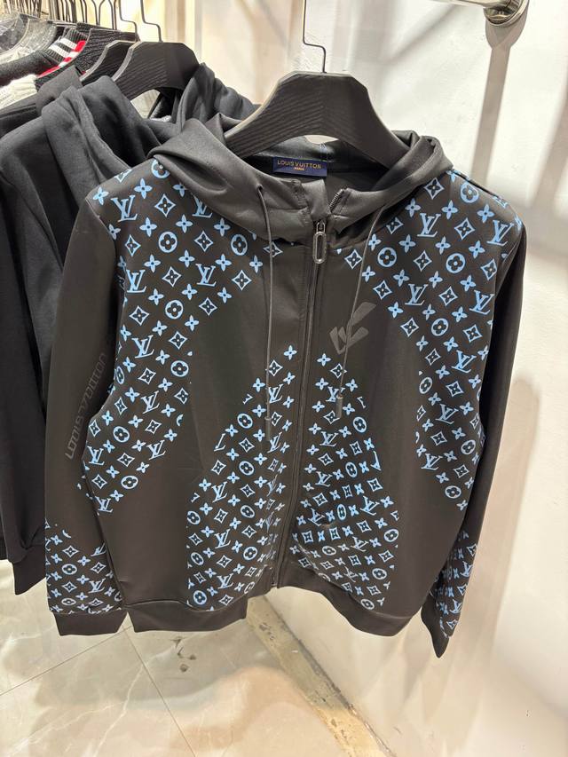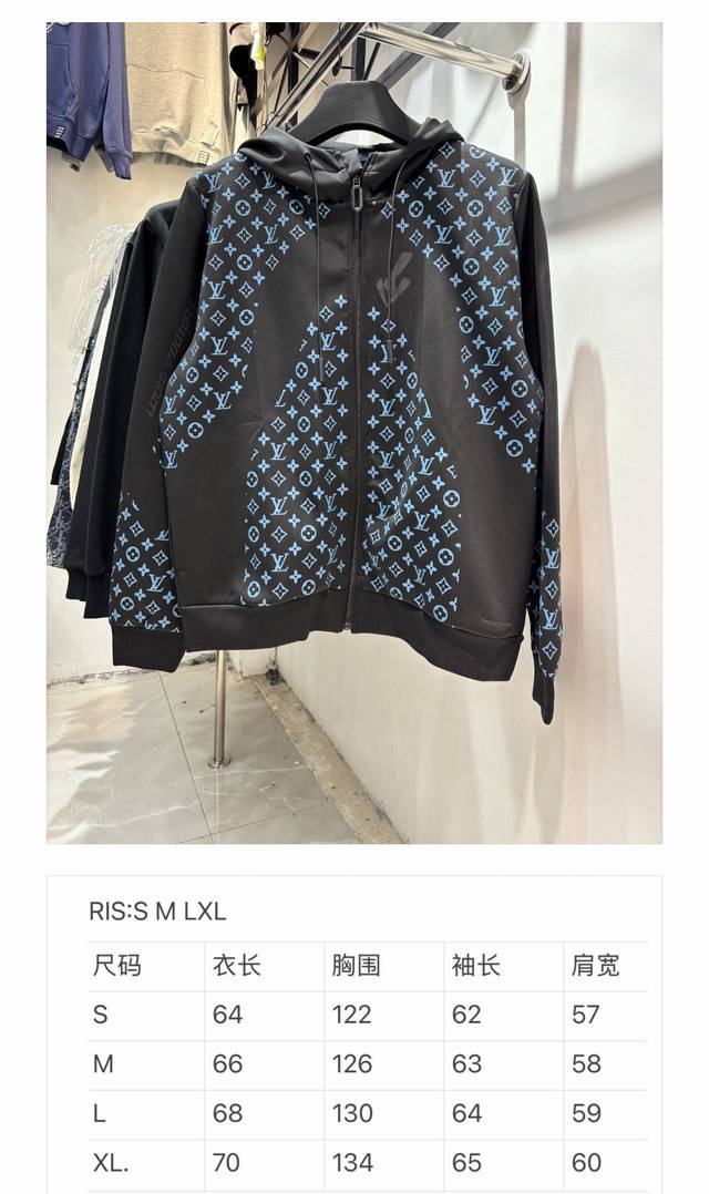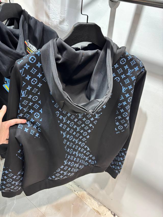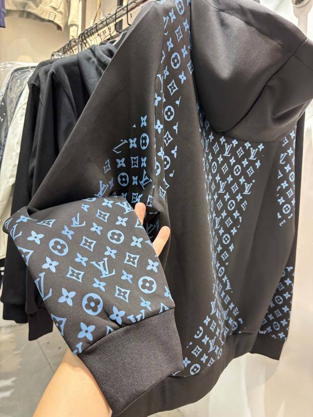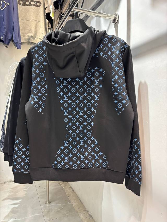 Style Number: Zmr129# Louis Vuitton Official Website New Limited Edition Patchwork All-over Monogram Color Temperature Zipper Jacket . Made with high-end imported space cotton fabric, the jacket has a strong shaping effect. It features an all-over logo screen print, a drawstring zipper on the hood, and other detailed features. Lightweight and not bulky, it's suitable for early spring, autumn, and early winter. Color: Black. Sizes: S, M, L, XL. See size chart in Figure 9.