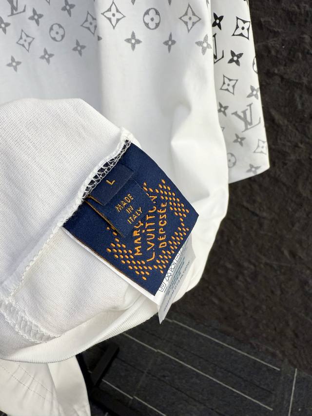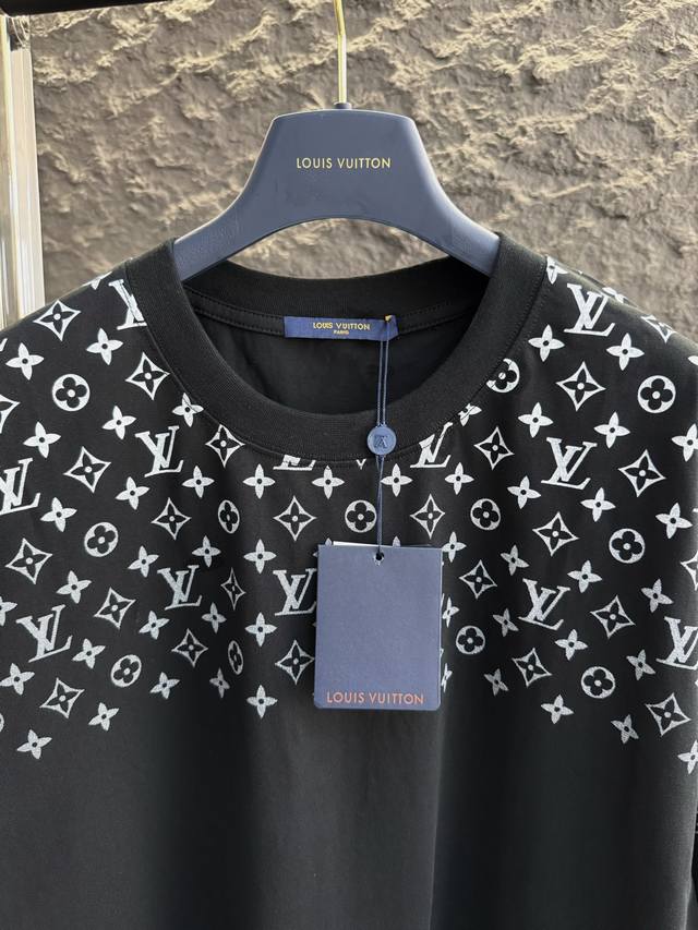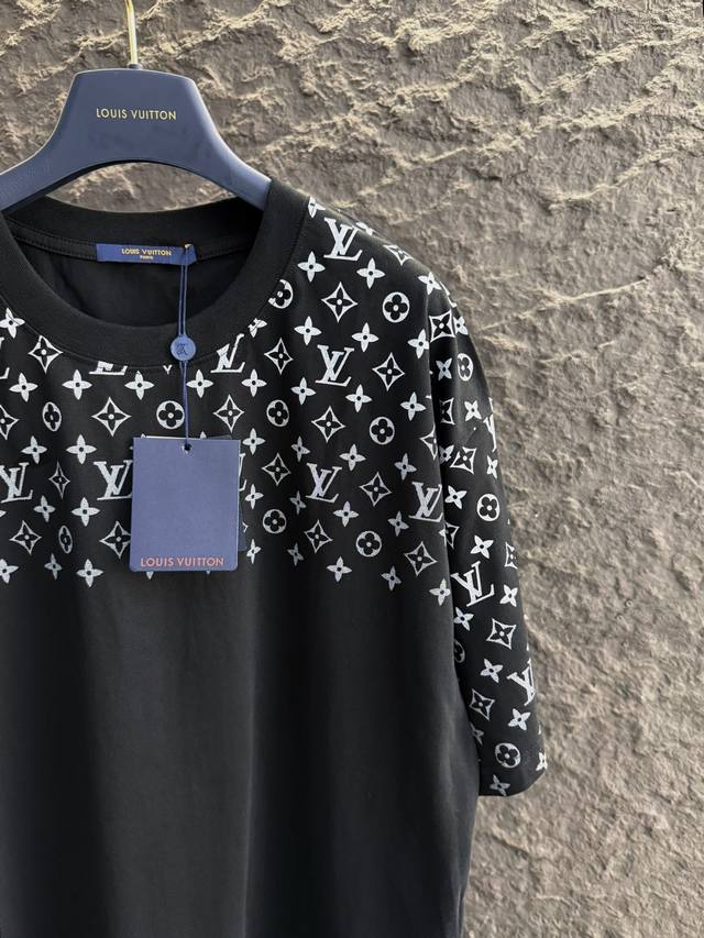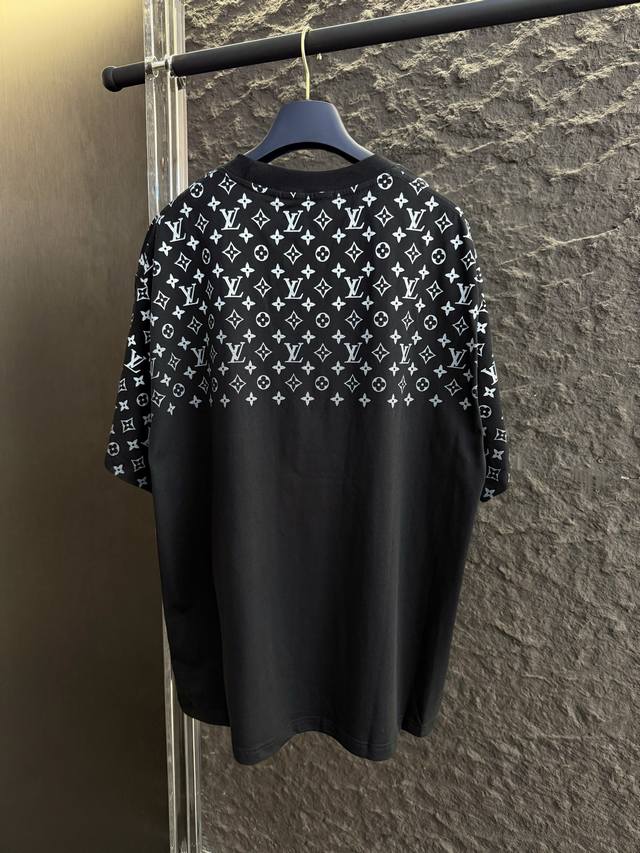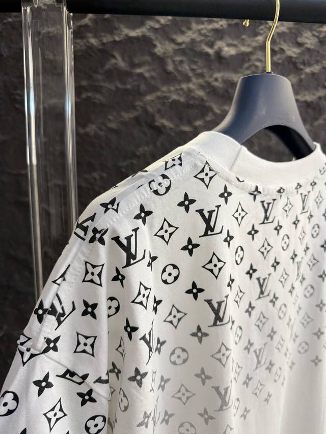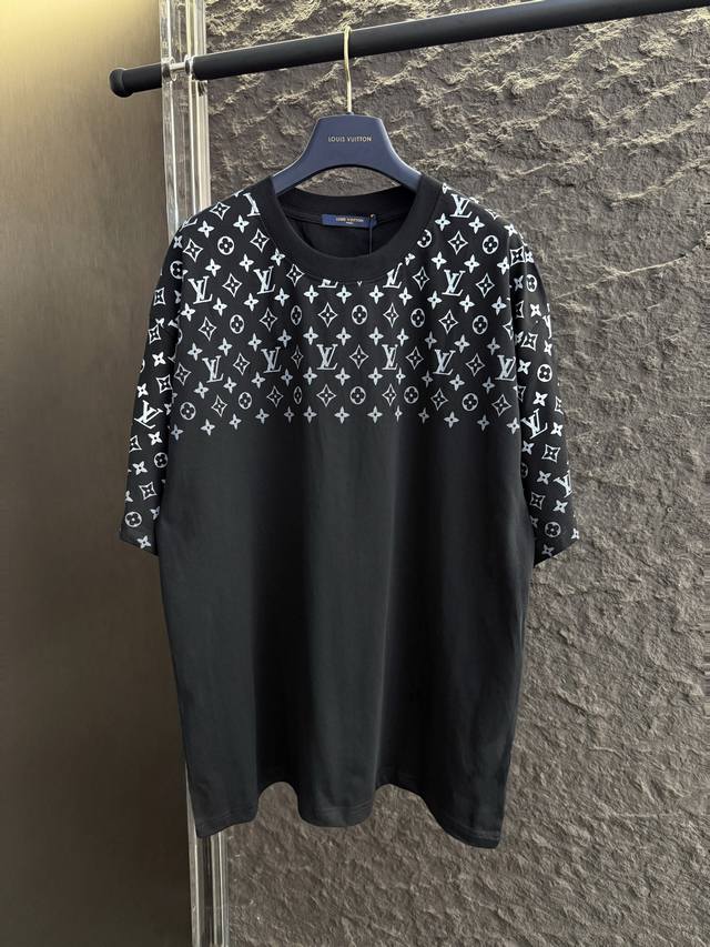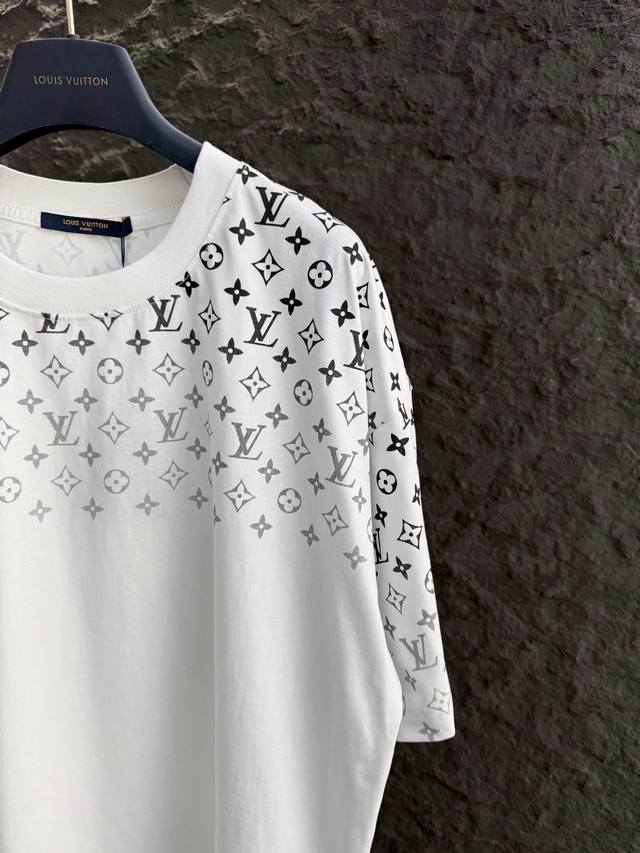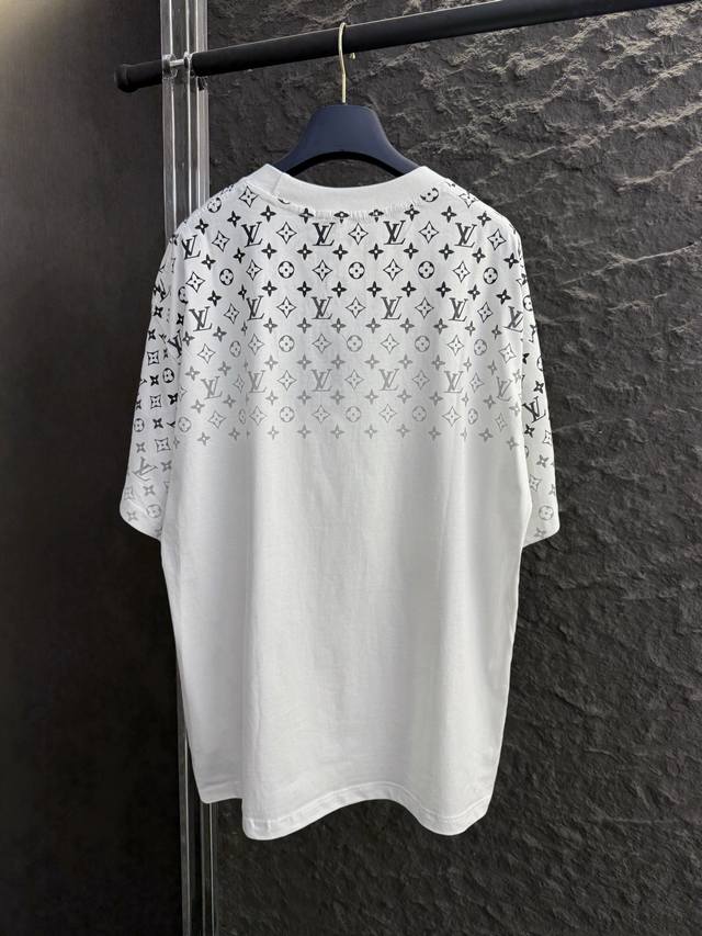 Lv Gradient round neck monogram pattern Starry sky gradient elements Cool and fashionable High-quality woven combed cotton woven Comfortable and textured Customized double yarn 260g fabric Loose version for both men and women Can be matched with the same period items Same style for men and women High version