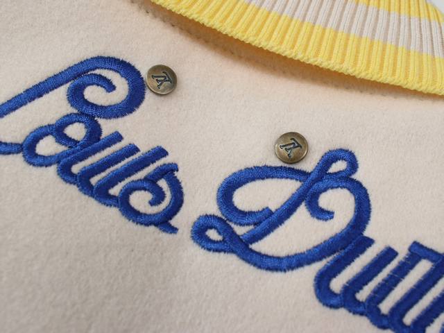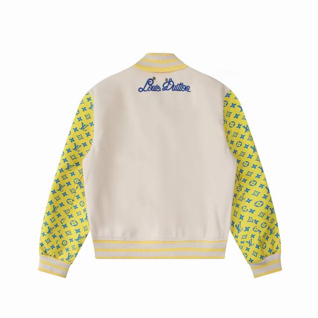 Louis Vuitton SS23 color-blocked logo print single-breasted belted baseball jacket for men, yellow. Louis Vuitton, a brand under the French LVMH Group, is a renowned luxury handbag and leather goods brand with over a century of legendary classic status, a sophisticated symbol of global fashion travel art. The canvas bag featuring the unique interwoven "Lv" logo, accompanied by its rich legendary history and elegant design, has become a fashion classic. Continuing to this day, whether it's the leather goods, scarves, watches, pens, or clothing that have been extended to this brand, they all adhere to the "travel philosophy" of pursuing refinement, quality, and comfort as their design concept. This