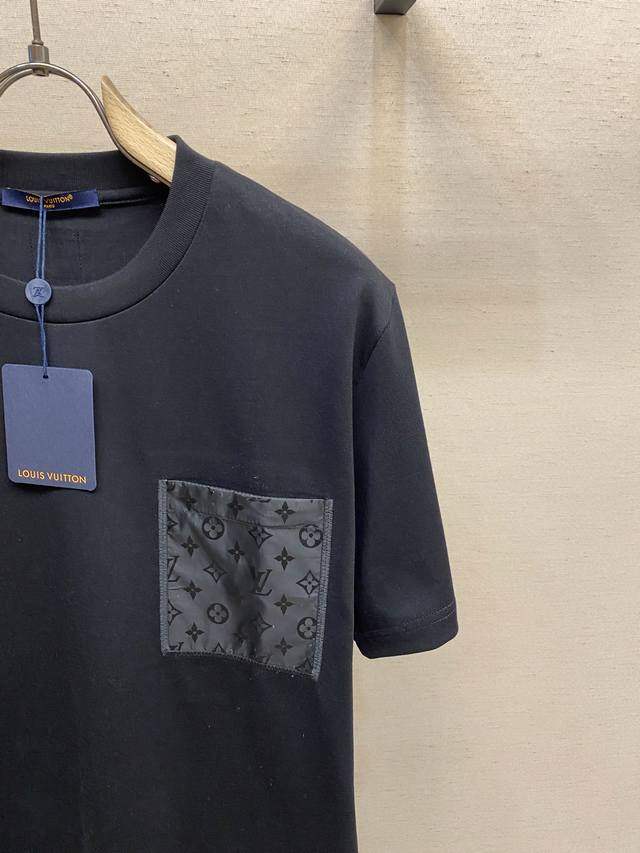 This Louis Vuitton cotton short-sleeved T-shirt features a jacquard silk patch pocket design for a relaxed silhouette, easily blending into casual looks or paired with matching shorts for a perfect summer outing. Washing instructions: Dry clean or machine wash individually in cold water, reversed, and air dry. Sizes: S-XL