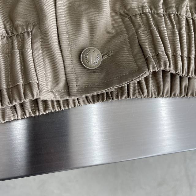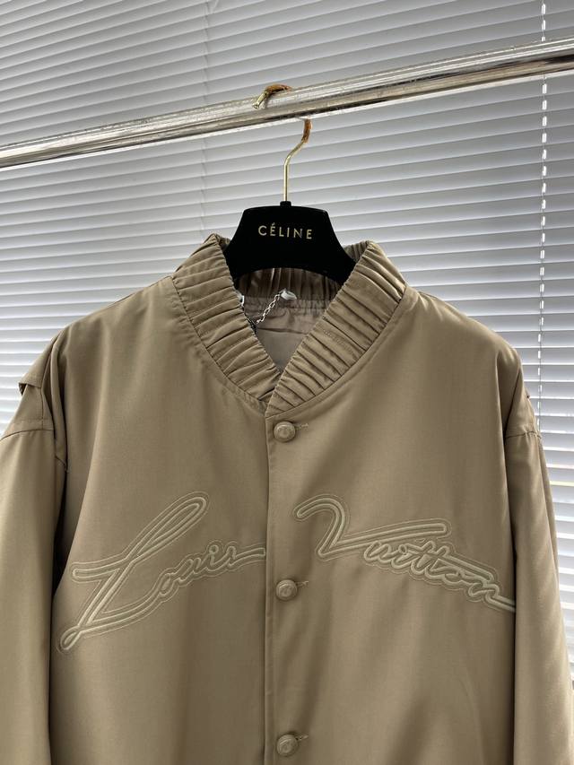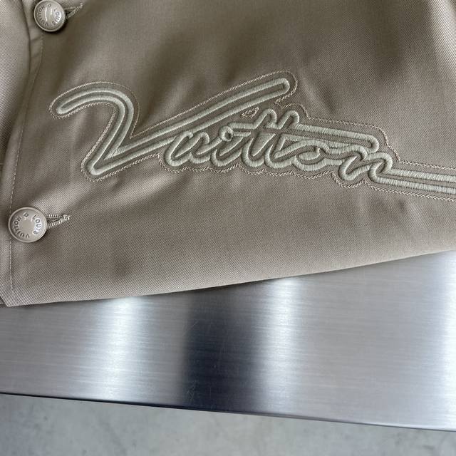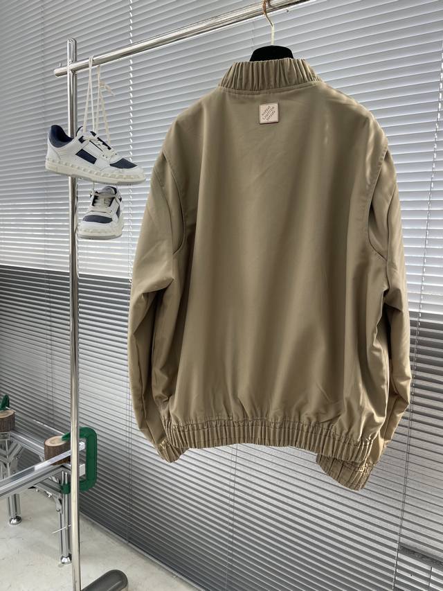 This new Louis Vuitton belted jacket is crafted from a lightweight twill cotton blend, reimagining the baseball jacket with a clean, sleek style. It features an embroidered Louis Vuitton logo on the chest and a Marque L.Vuitton D