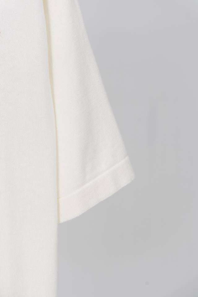 original 6109 purchased and developed, the fabric is made of 40-score double-ply combed cotton, using German Dornier 12 knitting machine, wool jacquard, wool washing, customized 1:1 trademark, this T-shirt uses intarsia technology, with contrasting colors to weave the logo, the flip special effect stitching of the armhole injects novelty, the mulberry silk intarsia label on the back presents a mirror effect, and the jacquard is presented using the reverse-to-positive process, which can make the sweater visually more crafty, the contrast changes between the tissues make the concave and convex texture more obvious, and the characteristics of the yarn are cleverly used to reflect the sense of detail, focusing on the use of high-brightness and high-saturation bright colors. The splicing between different color blocks and tissues, the main pattern on the fabric surface presents a full color effect.
