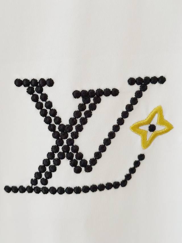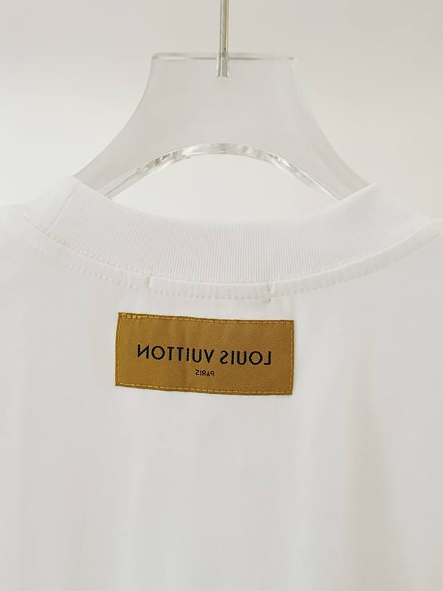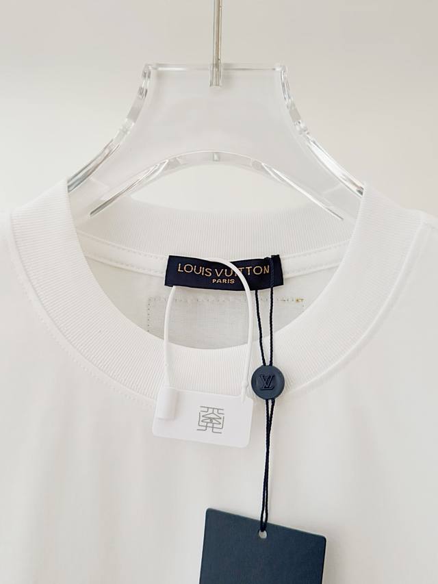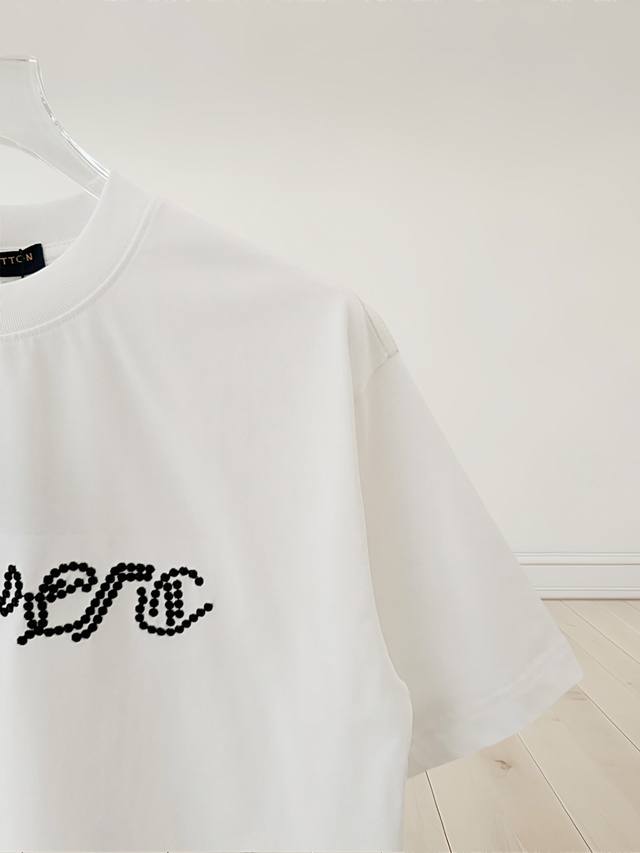 Top version. Official website quality Rlouis Vuitton*Louis Vuitton 2025 new Pharrell embroidered rivet letter round neck T-shirt uses original plate exclusive customization 280 grams of combed fabric with very comfortable texture 100% different from the top fabric in the market No shrinkage, no deformation, no pilling fabric thread, fixed dyeing in the same vat, no color difference, not easy to deform Original version Original customization Accessories Collar label Washing label Hanging tag Perfect details Three labels are complete Same style for men and women