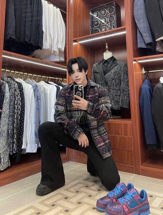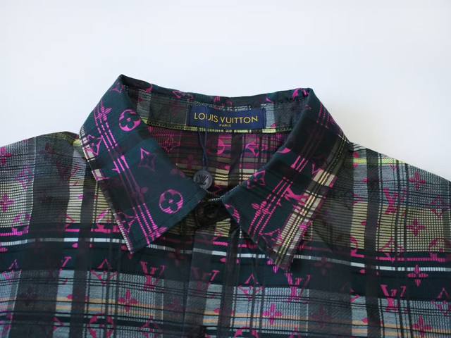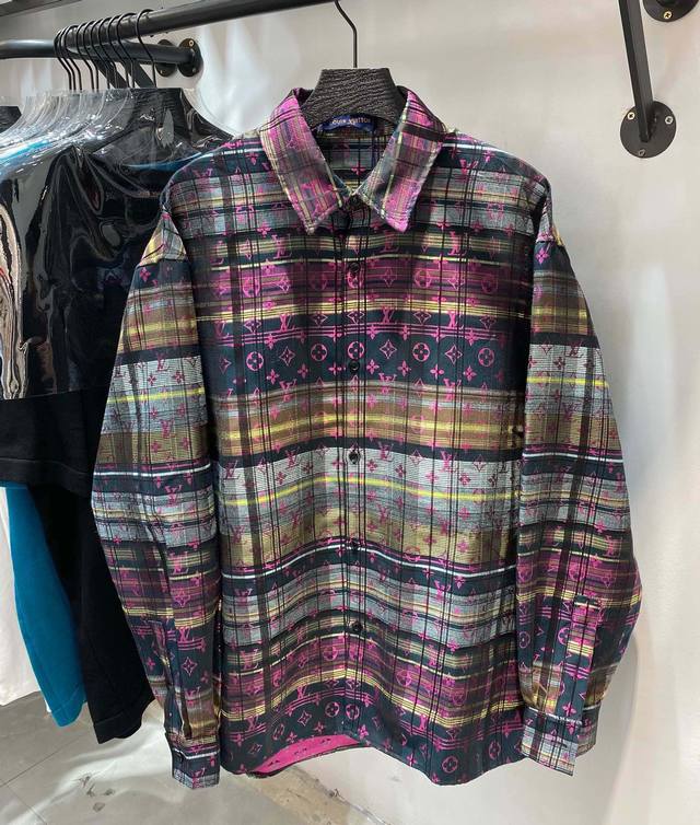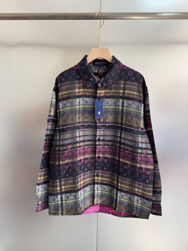 Top-quality, authentic Louis Vuitton 23Ss new Lv iridescent plaid jacquard dark red long-sleeved shirt/jacket. One of Louis Vuitton's hottest shirts this year, this one features extremely complex craftsmanship, custom-made fabric, and is a perfect replica of the original. It's very time-consuming and resource-intensive, with a double-sided jacquard logo print on the fabric and infrared positioning technology. Large factories produce this with very slow production and are extremely complex to manufacture. Purchased directly from the original and molded 1:1, with custom buttons, complete with all three labels and packaging, distinguishing it from common market products. Suitable for couples, unisex, oversized fit, moderate thickness, suitable for spring and autumn temperatures of 15-25 degrees Celsius, can be worn alone or as an outer layer. It looks super stylish layered under a down jacket in winter! Good things don't wait, so if you're a shirt lover, you absolutely must get this! It's the same style worn by many internet celebrities and stars, and even Su Liu's style is guaranteed to attract attention! Sizes: M-XL Length: 72 74 76 Chest: 116 124 Shoulder Width: 51 52 53 Sleeve Length: 59 60 61