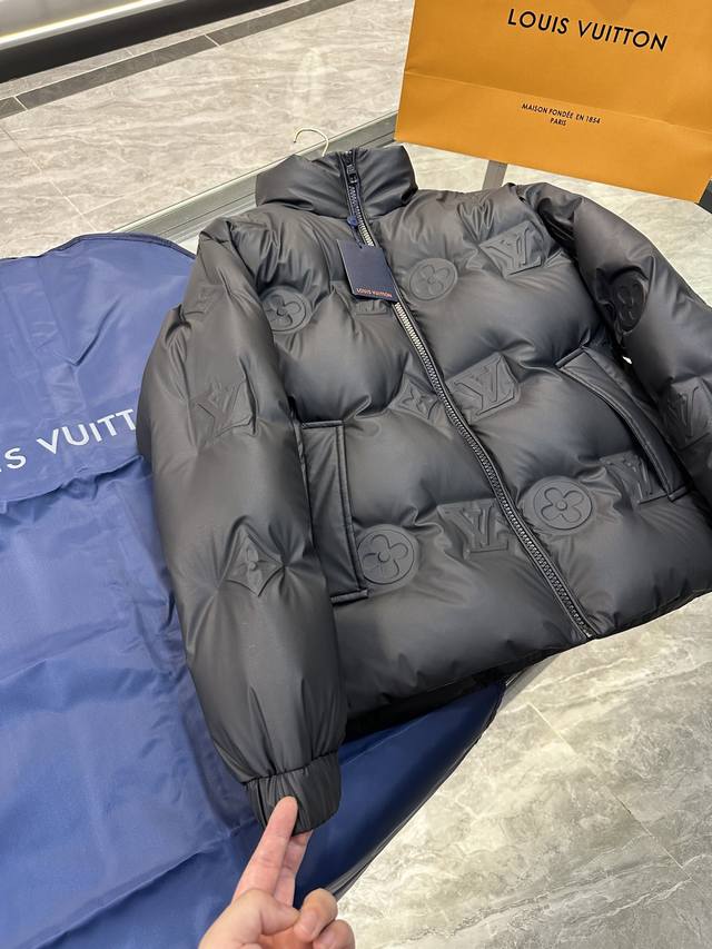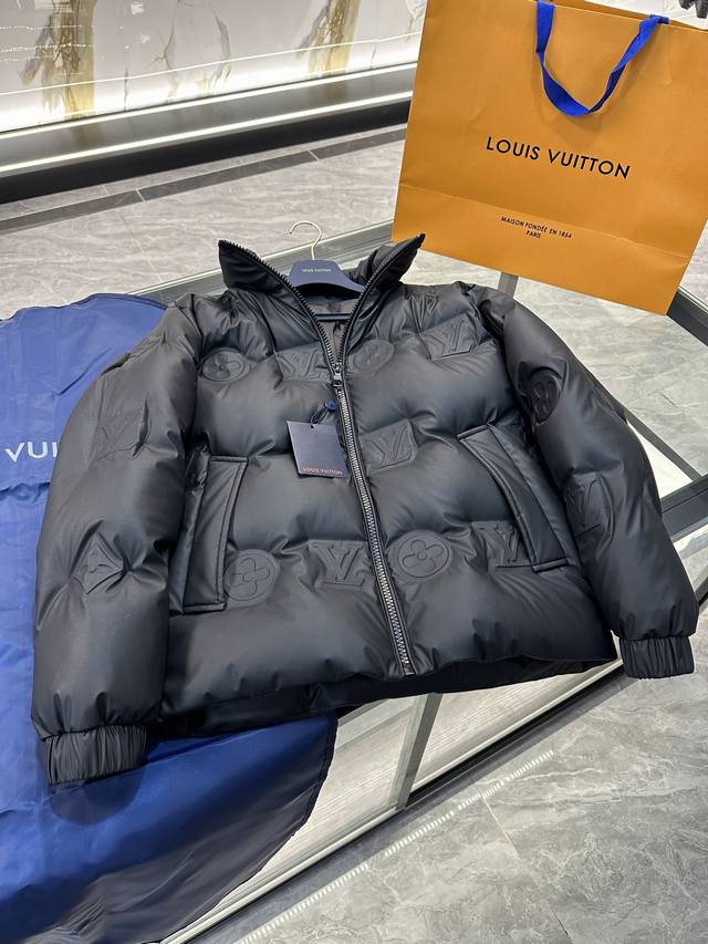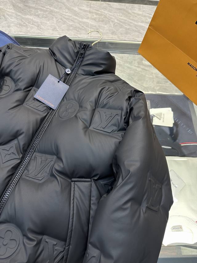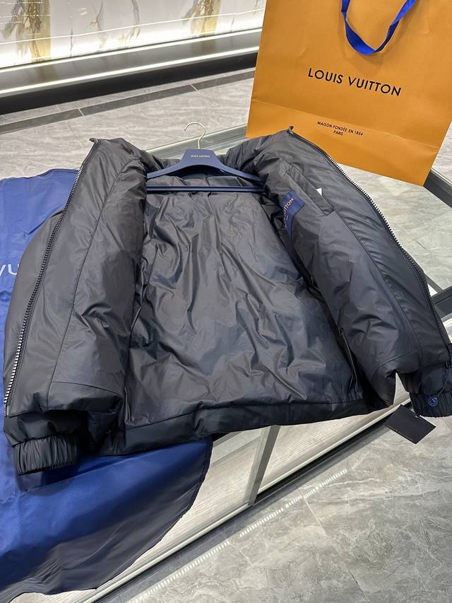 Top-tier Louis Vuitton 24 New Technological Leather Down Jacket. Goose down filling. More detailed real photos. Comes with a suit storage bag, shopping bag, hanger, and shipping box. Complete attention to detail inside and out. Sizes: 48, 50, 52, 54, 56. Length: 68, 69, 71, 73, 75. Chest: 118, 122, 126, 130, 134. Shoulder width: 47, 48, 49, 50, 52. Sleeve length: 62, 63, 64, 65, 66.