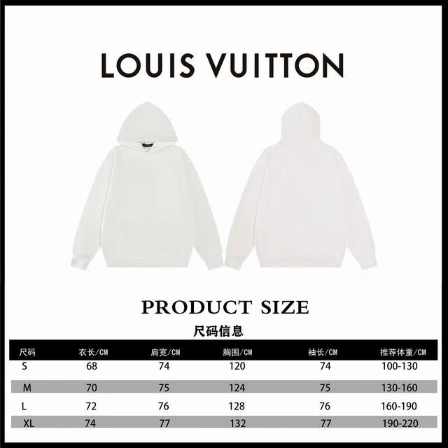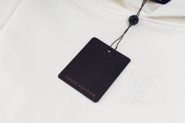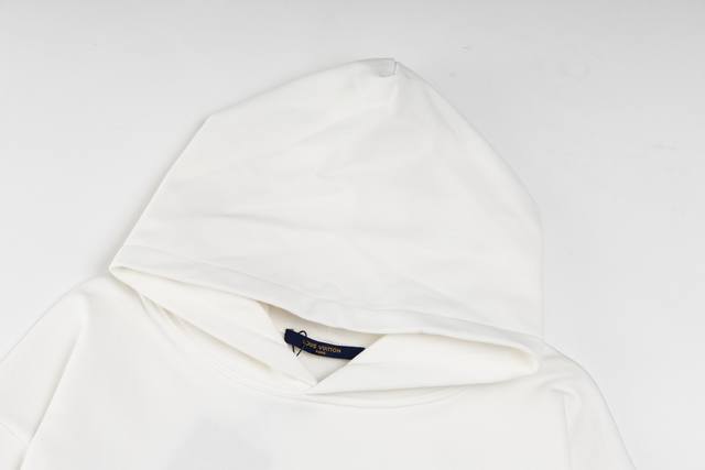 Top-tier version. Official website quality. Louis Vuitton*Lv logo embossed hoodie. Custom original white cloud-feel skin-friendly pure cotton fleece. The pure white color symbolizes purity and elegance. The iconic Lv logo embossing is located below the collar, its slightly raised texture highlighting the wearer's noble status. Simple yet elegant, it exudes a subtle luxury, showcasing its sharpness in the details and enjoying a new era of fashion.