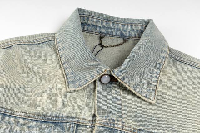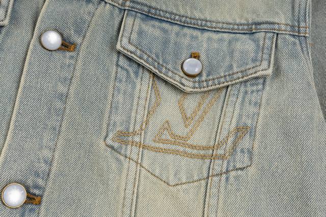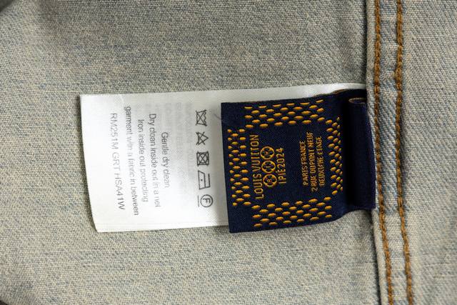 Top-tier version with white background, easily compared to other products on the market. Ddd Lv2025. Top-tier denim version purchased and developed, custom-made within a one-month cycle. Original design developed from slub cotton denim fabric. Gradient mosaic check fabric. Letter jacquard on denim, 1:1 replica. Pearl hardware, laser engraving logo. Minimum order quantity 60,000 pearls. Cost of a single pearl button: 20 RMB. Perfect details. After garment completion, undergoes enzyme soaking and washing process. Buttons are finally hand-sewn; machines cannot be used because the button material is pearl, resulting in a 40% scrap rate. Full mosaic check pattern, precisely cut, black and white checks, all fixed in place. DDD Sizes 46 48 50 52 DDD