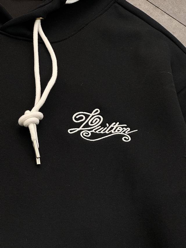Trendy Louis Vuitton Lv. Donkey's hooded sweatshirt with double drawstrings and heavily embroidered front and back monograms and custom hardware!