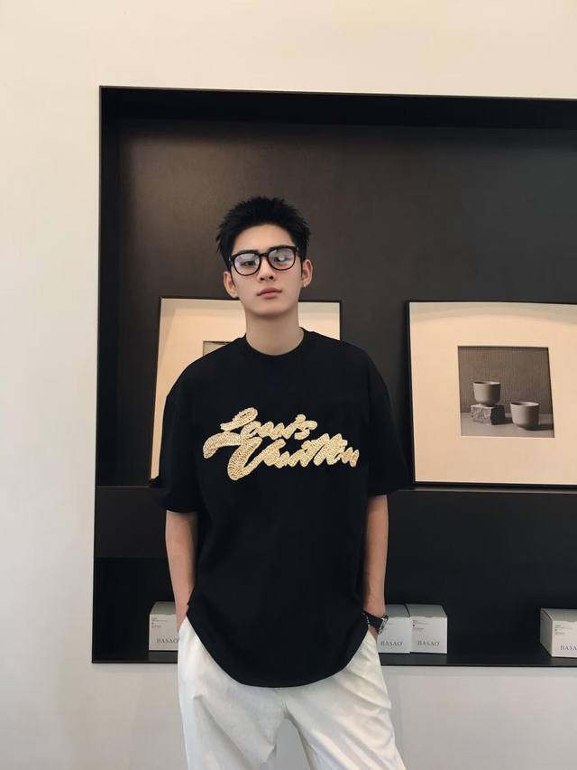 Upper body picture 1V 25Ss Straw rope logo short sleeve First time original pur