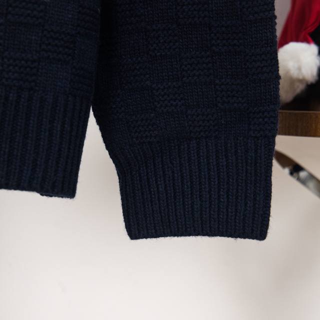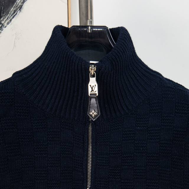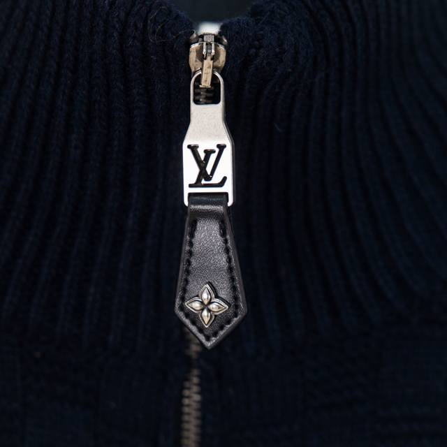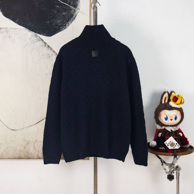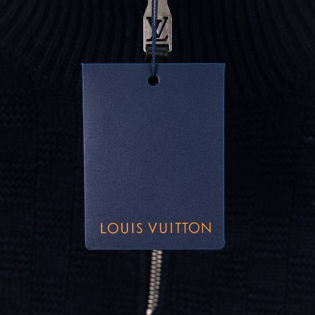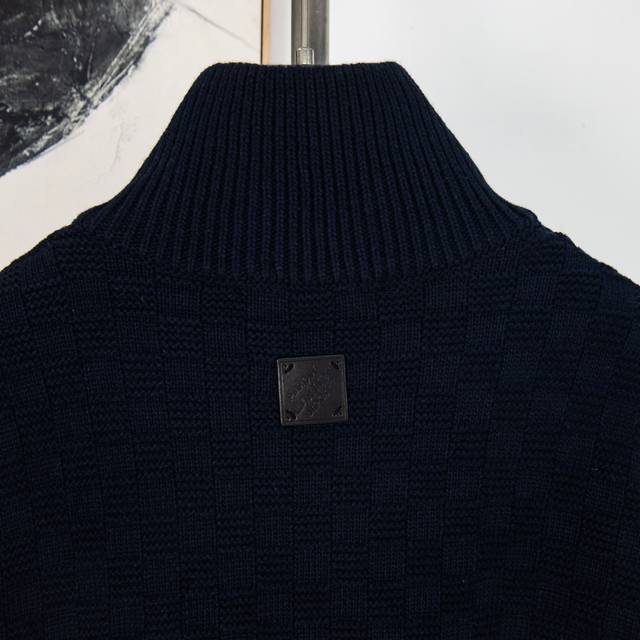 Zp Version [Exclusive Supply] Louis Vuitton Damier Half-Zip Sweater. Fabric: Made from a blend of 30% wool, 20% cashmere, and 50% cotton yarn. This fabric has a slight stretch, and the cotton yarn creates a three-dimensional shape for the garment. The cashmere enhances the warmth. Accessories: The zipper and pull are custom-made from copper, with the brand logo laser-cut into the pull. The back collar label is made of double-layered top-grain cowhide with an embossed brand logo. Craftsmanship: The entire garment uses imported 7K knitted brand checkerboard patterns, requiring highly skilled pattern makers. This half-zip pullover sweater is made from a blend of cashmere and sheep's wool, interpreting a formal style with an elegant touch. The full Damier check pattern accentuates the rich texture, while the Marque L.Vuitton D