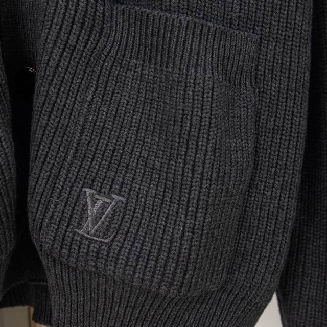 Zp Version [Exclusive Supply] Louis Vuitton Embroidered Logo Wool Cardigan. Fabric: 60% cashmere, 40% cotton yarn. This fabric has elasticity and a three-dimensional fit, resulting in a very flattering fit. Craftsmanship: 3D embroidery using imported machines. Finishing: Washing to remove impurities - high-temperature drying - adding a hand feel. Accessories: Button bases are made of alloy material, with pearlescent buttons and laser-engraved brand logo. This half-zip pullover is made of a cashmere and sheep wool blend, interpreting a formal style with an elegant touch. The full Damier check pattern enhances the rich texture, the Marquel.Vuitton D
