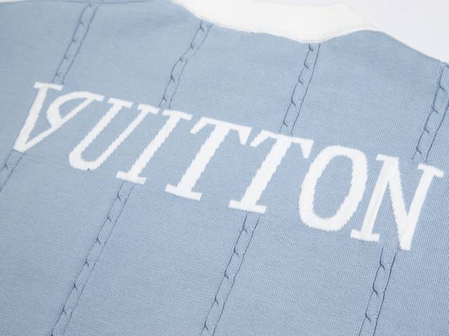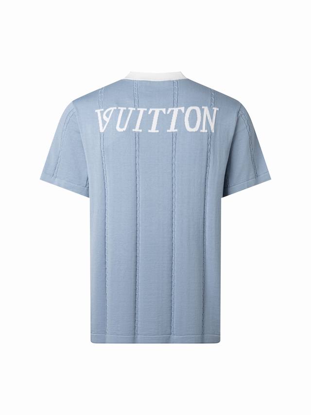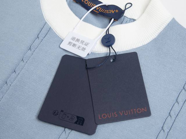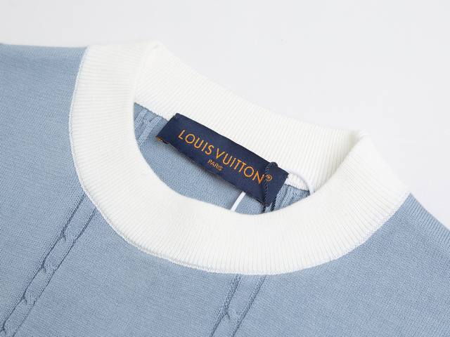 Zp Version DDD - Louis Vuitton 26 New Arrivals on Official Website: Badge Embroidery, Back Intarsia, Wool Blend Crew Neck Short Sleeve - Made with Zp Custom-Dyed Fabric, 1.1 Ribbed Yarn, Same Dyeing Batch, Zero Color Difference, Full Set of Custom-Made Accessories, Distinguishing from Common Products on the Market, Welcome to Compare - Color: Sky Blue - Sizes: S, M, L, XL