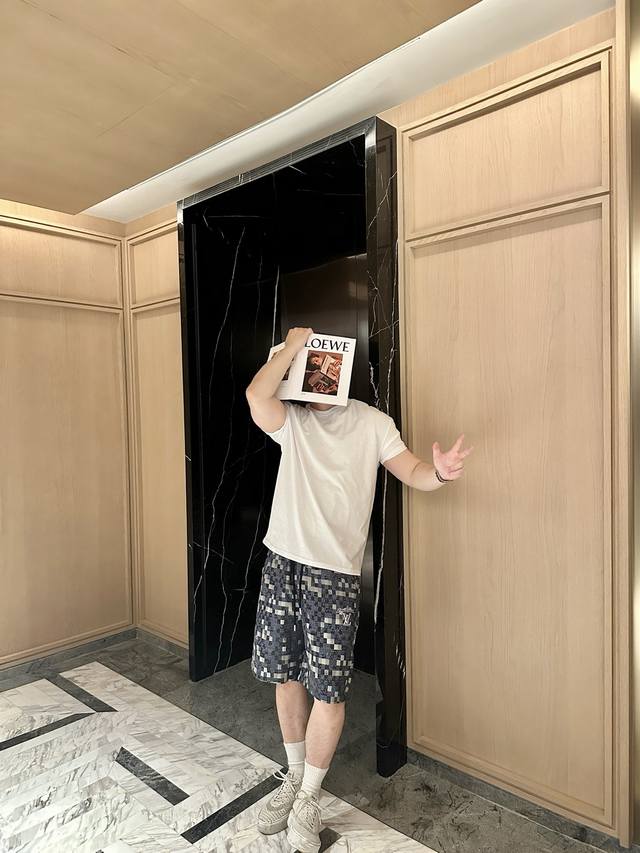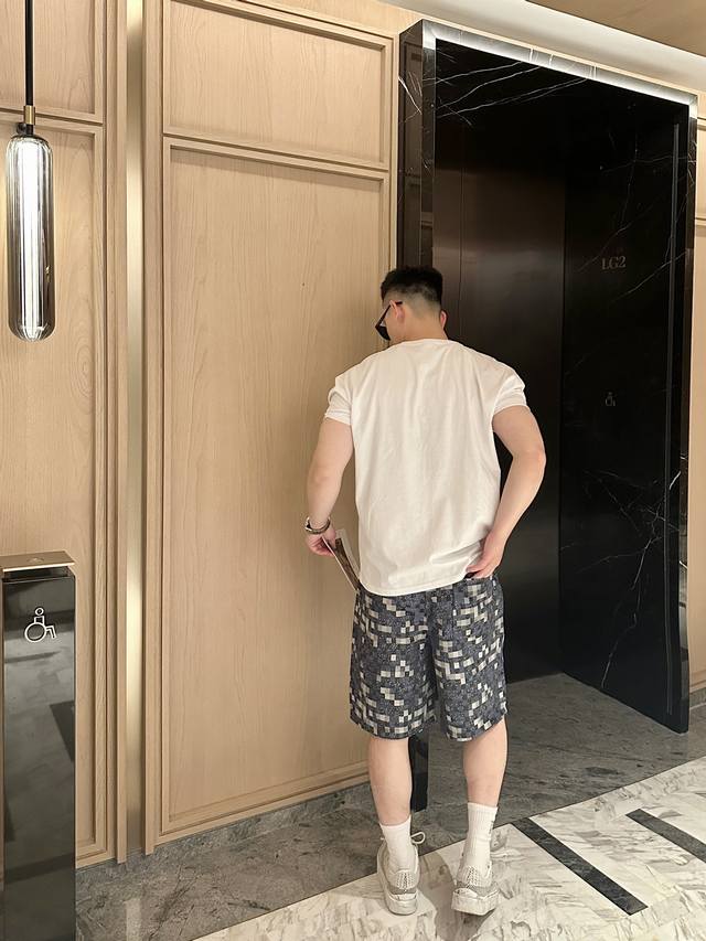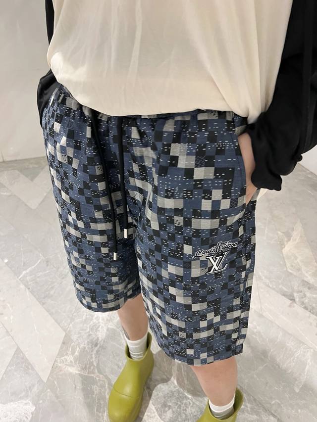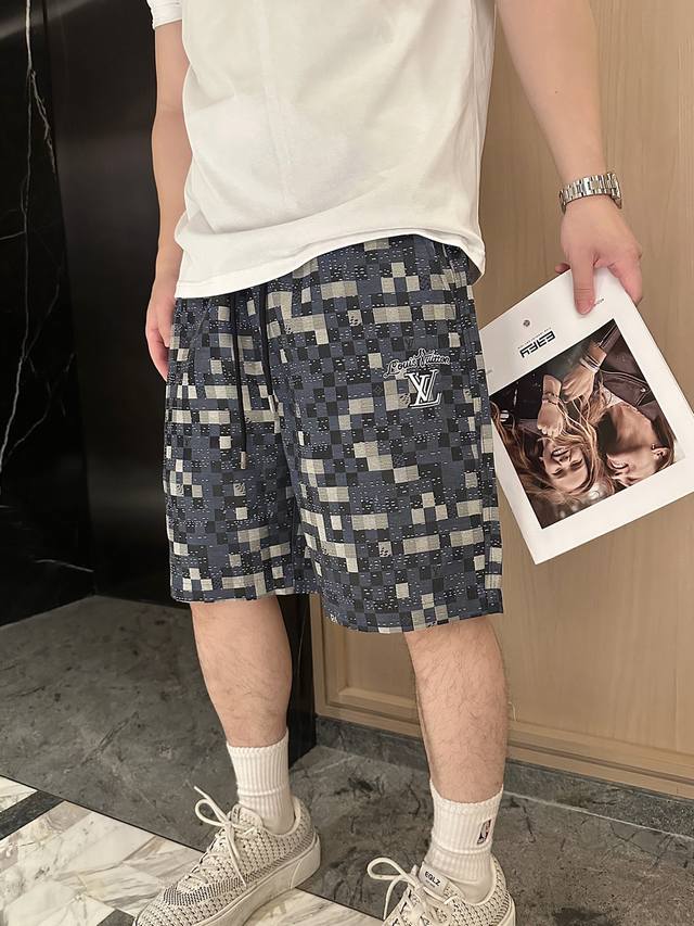 2025 Spring and Summer Damier Textured Mosaic Embroidered Logo Casual Shorts The
