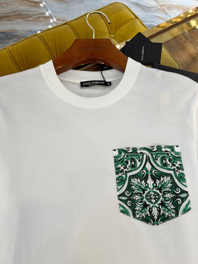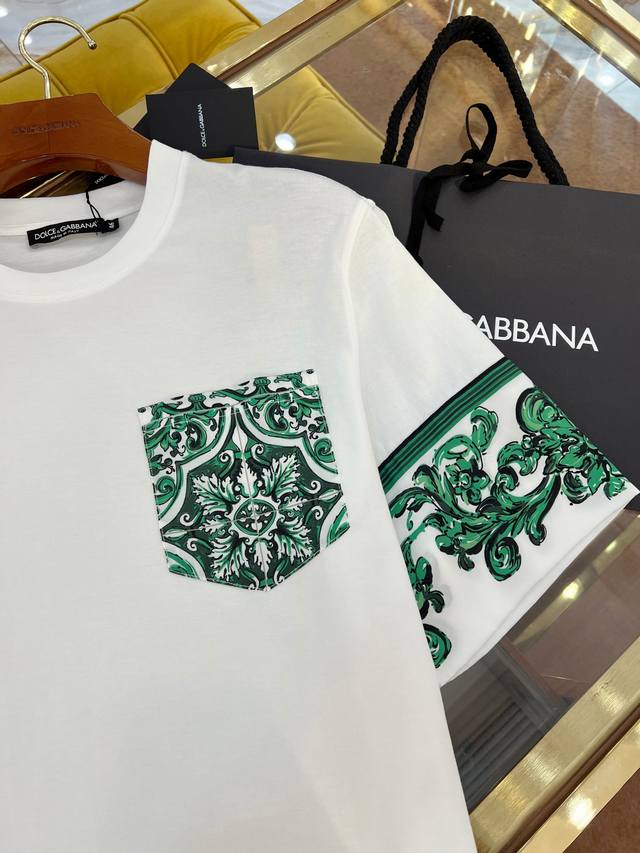 / 2025Ssdg latest T-shirt top silk material printing splicing design original fabr