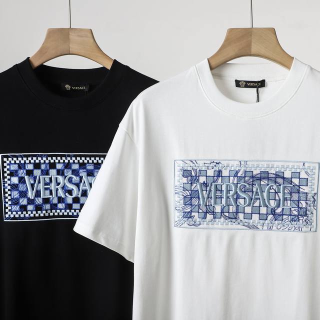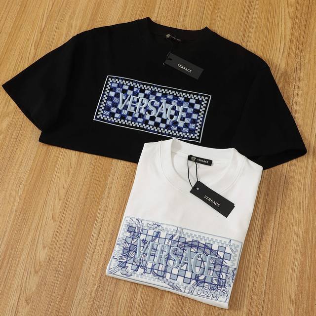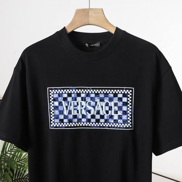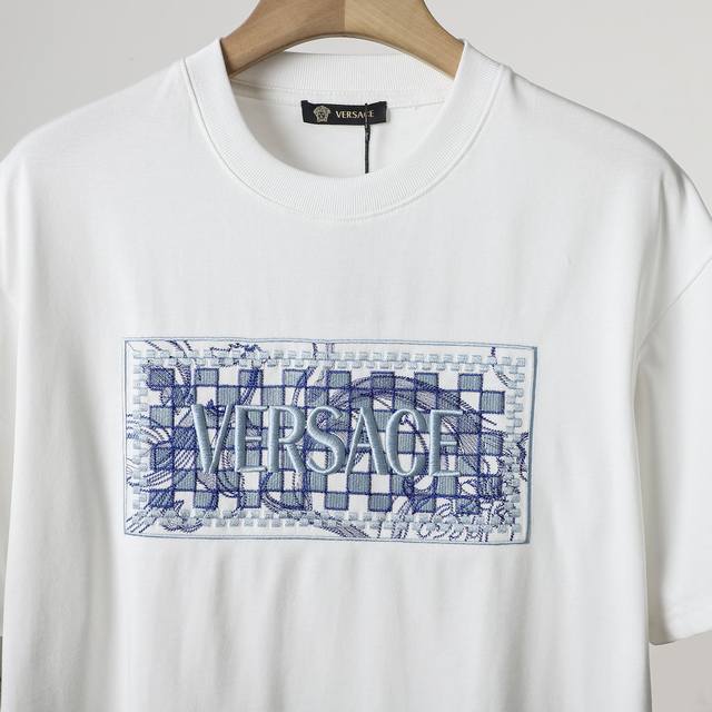 a top-quality Versace embroidered short-sleeved T-shirt, purchased and patterned