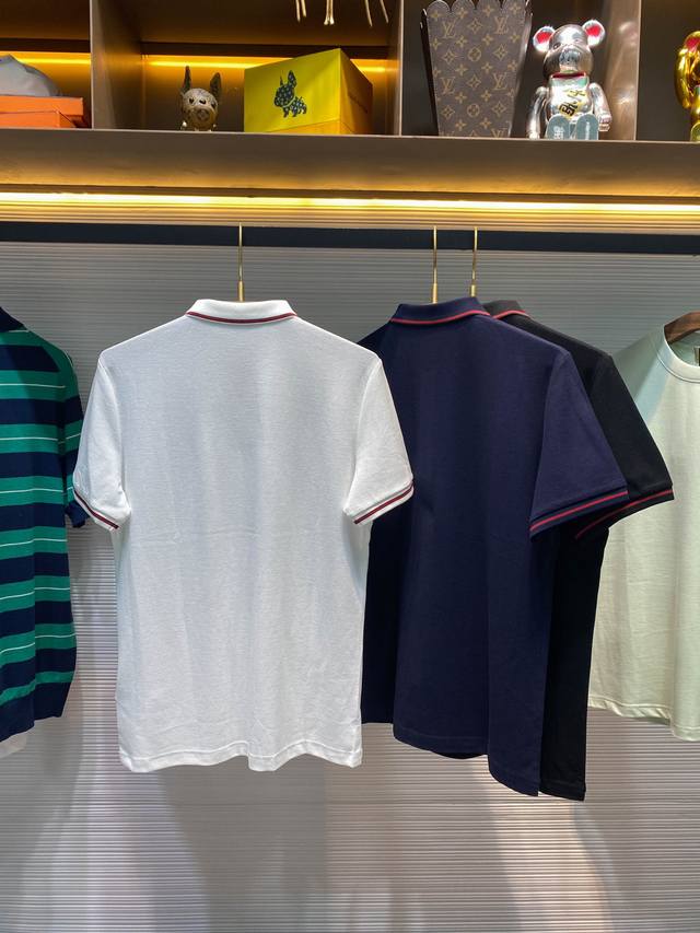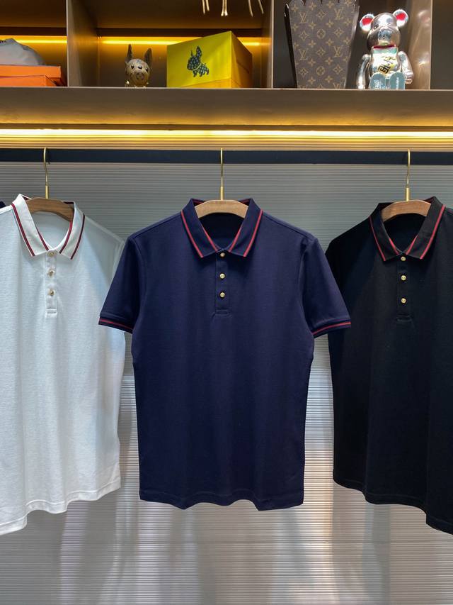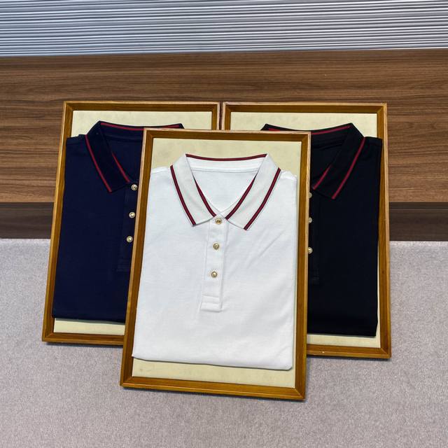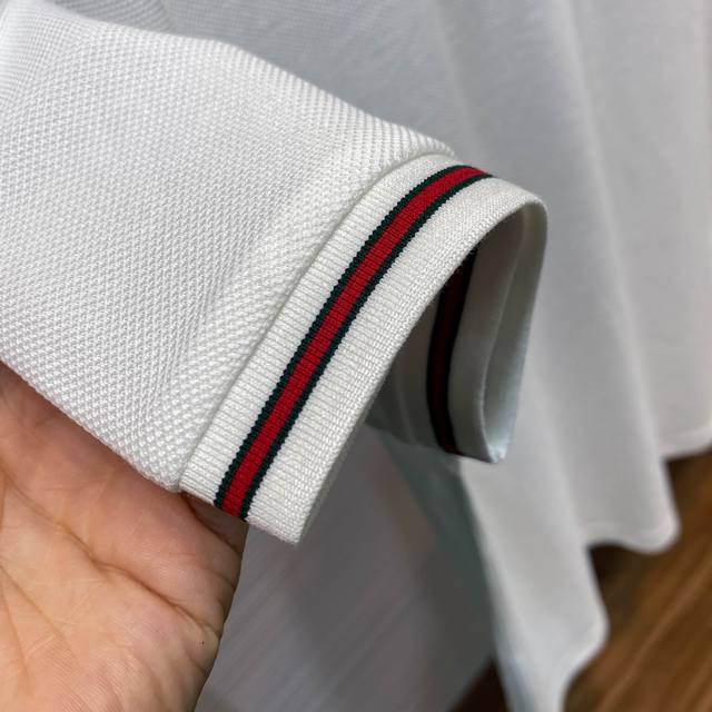 This Polo shirt uses custom-made mesh beaded cotton cloth, which is not only delicate in texture and soft to the touch, but also has good breathability and moisture absorption, which can keep the skin dry and comfortable even in the hot summer! The collar cleverly uses the red and green striped jacquard contrasting design. This bright color collision instantly breaks the monotony of the traditional Polo shirt and injects infinite vitality into the whole piece of clothing! The exquisite Gg gold buttons on the placket are arranged in a staggered manner . They are not only practical parts for opening and closing clothes, but also the finishing touch of the whole piece of clothing! Whenever it is gently buckled, the crisp metal collision sound seems to be telling the long history and excellent quality of the brand! The casual straight-tube cut design not only retains the classic elements of the Polo shirt, but also incorporates the modern casual fashion concept. It can not only modify the body shape well, making people look more upright and stylish, but also gives the wearer more freedom of movement. Whether it is daily travel or outdoor sports, it can be easily controlled and free to follow your heart! Black, white and navy blue, three colors are available! Size: M-3Xl