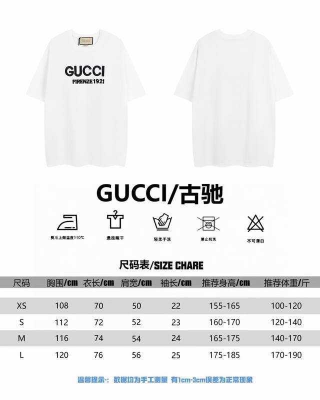 Available year-round. Gucci's new 3D embroidered short-sleeved shirt with letters. Fabric: Made of solid 260g 100% pure cotton. The new, high-quality Gucci 24Ss 3D embroidered crew neck T-shirt utilizes a 3D embroidery process, unlike ordinary embroidery. The custom-woven 260g double-yarn cotton fabric is comfortable, breathable, and durable. Three labels are complete, and the fit is loose, making it suitable for both men and women. Embroidery: Imported Tajima machines eliminate broken threads in one step, and large floral patterns are fully pressed for visible detail. Packaging: 12C thickened packaging bags with thickened glossy paper. Sizes: Xs SML Color: Off-white