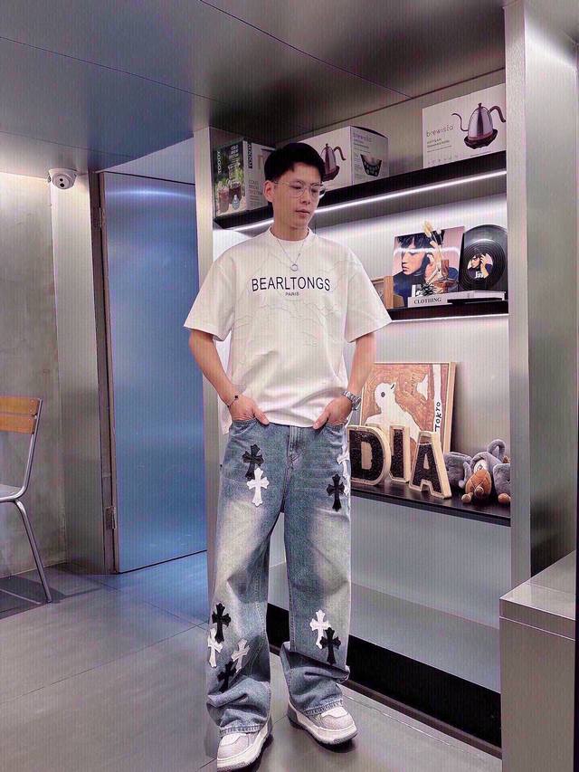 Bajia laser hole burning flower + suede three-dimensional flocking process to make the old washing hand-worn full of punk spirit Taxi Star Story loose version unisex color: black white size: M ~ 3X style number: 1210