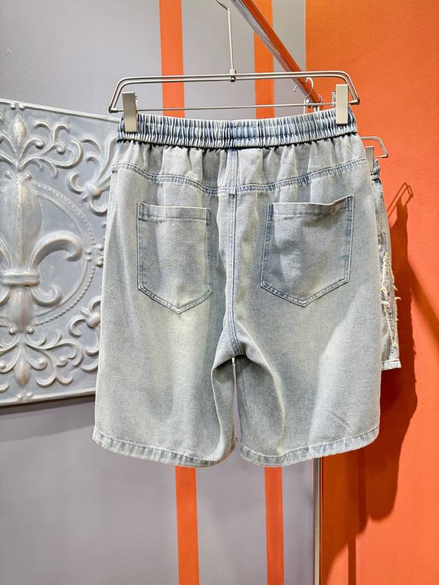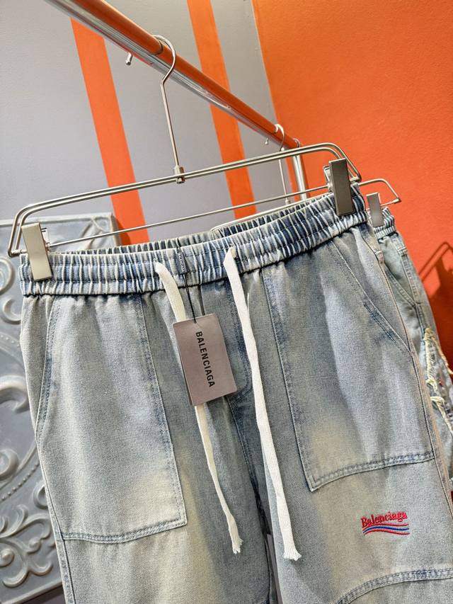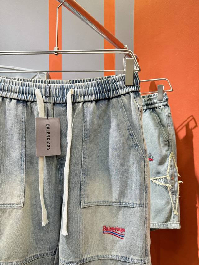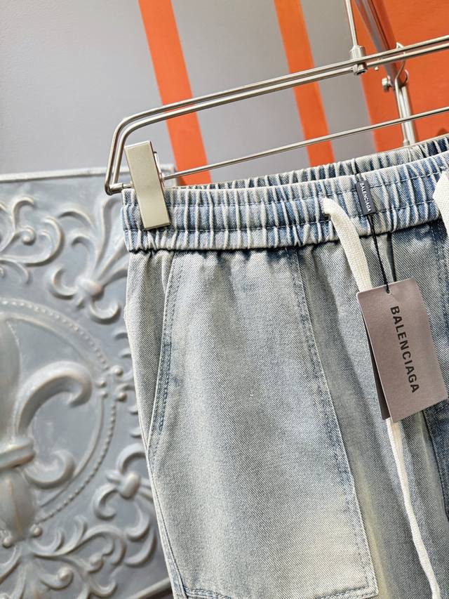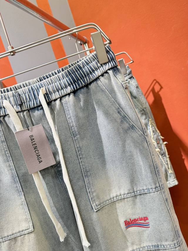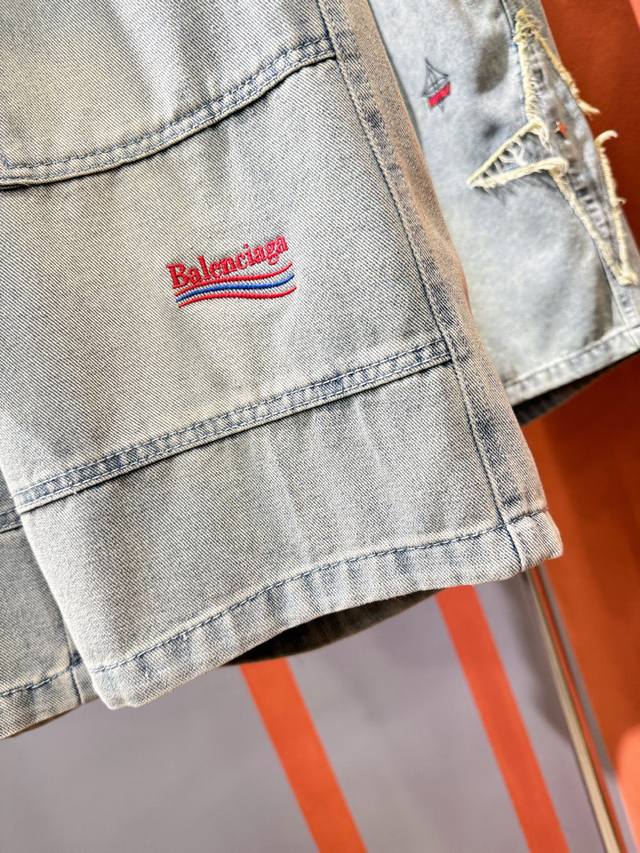 Balenciaga 2025 new product, original denim shorts, original rework, brand classic logo design, three complete labels! Original hardware accessories. Customized denim fabrics, completely matching the counter, welcome to try on the counter before buying, good goods are not afraid of comparison. Size: S-3Xl