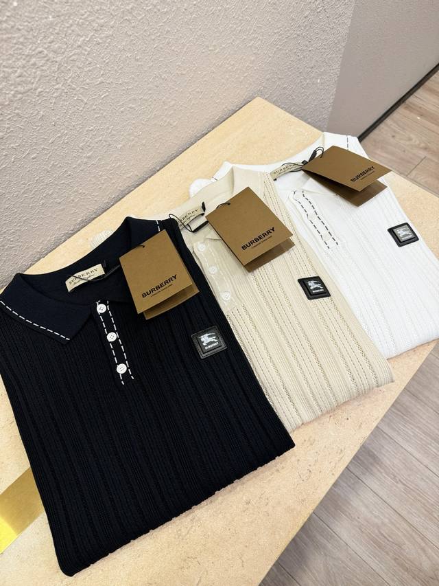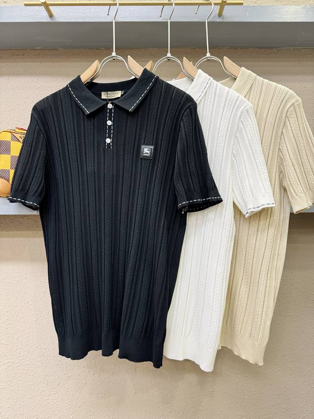 Burberry 2025 Spring and Summer new knitted short sleeves, imported knitted fabrics, soft to the touch. Top imported private goods, fashionable design trendy short-sleeved knitted sweaters, luxurious quality without doubt, the effect on the body is super good, the same style as the luxury official website! Size: M-4Xl