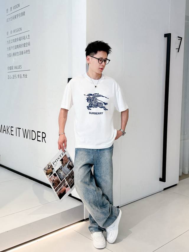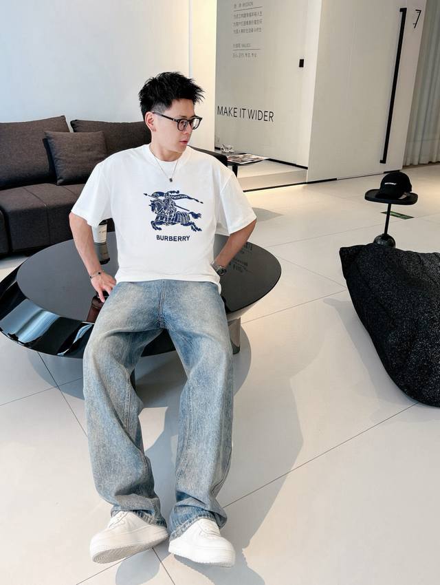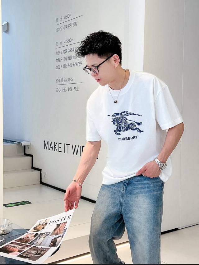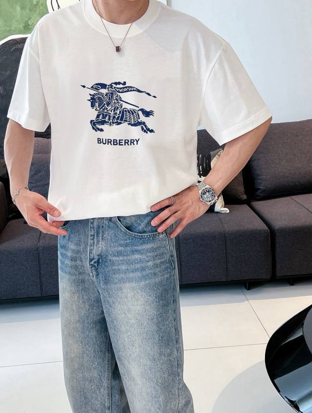 Burberry 2025 Spring/Summer new arrivals. Three complete logos on the chest. Three-dimensional foaming process on the chest. Mercerized cotton short-sleeved T-shirt. Good product, no need to explain too much. See the details. Counter sizes: M-Xxxl, 175-140, recommended L