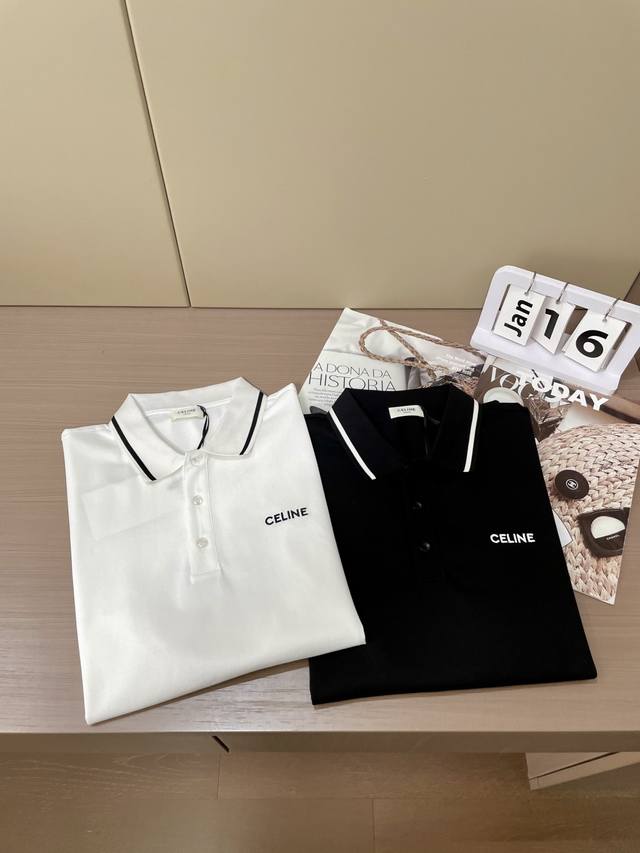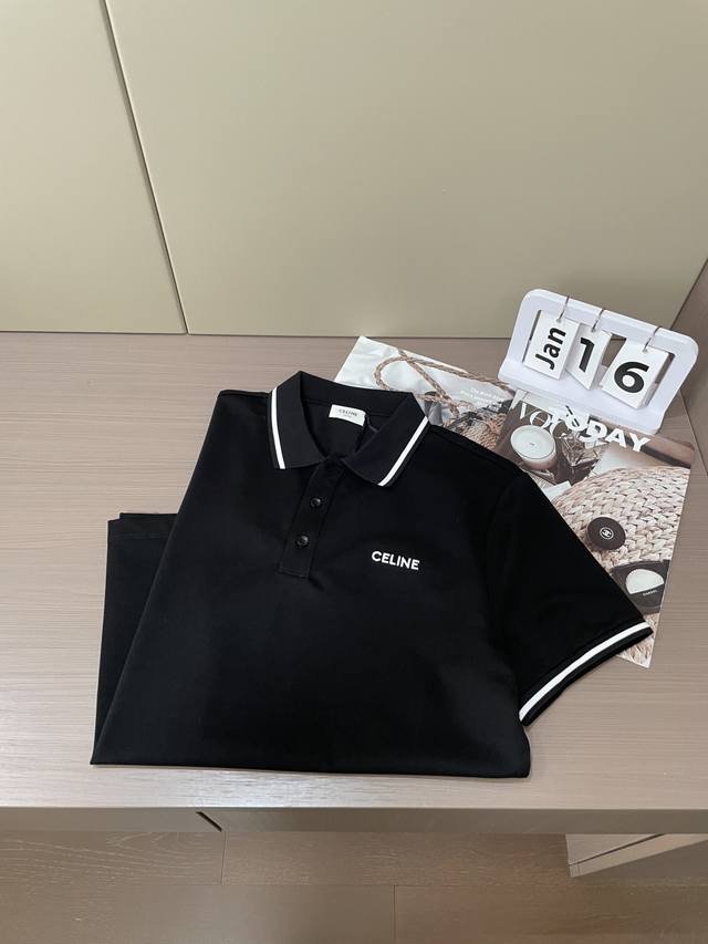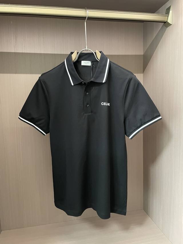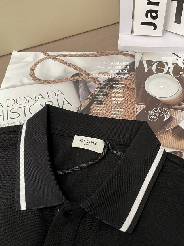 Celine 2025 Spring and Summer official website synchronized mature and young men's favorite style is classic and versatile business casual Polo collar T-shirt made of imported double mercerized pearl cotton fabric, comfortable and breathable, delicate texture, super soft and skin-friendly! Lapel design, tailoring belongs to a slim version, absolutely crisp and handsome fit! From the lock stitch, you can see that it is definitely a large factory OEM product. This density of sewing technology treats details meticulously! Highly recommended and you will never see such a style outside!