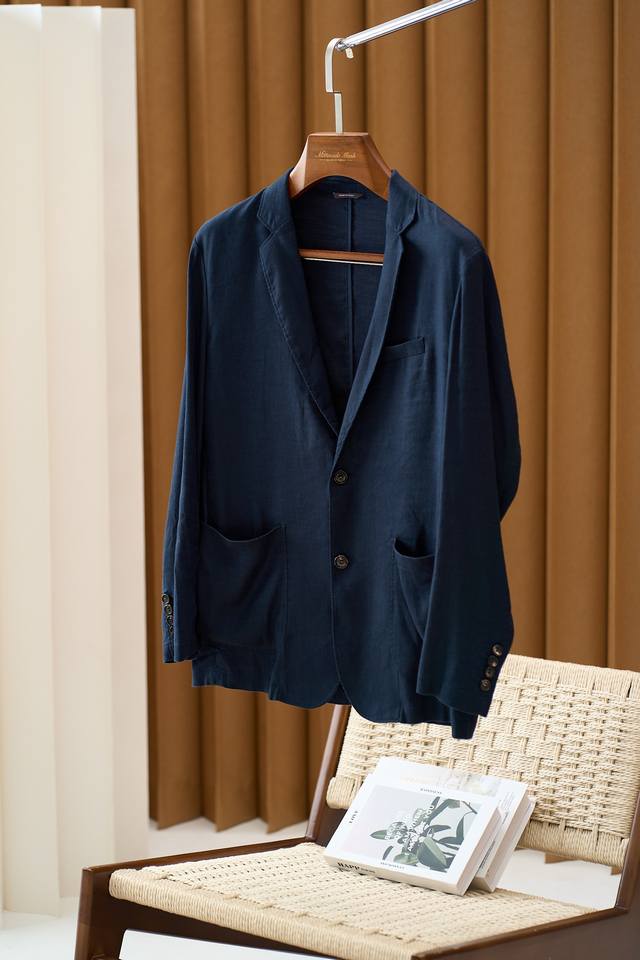 Classic Notched Lapel Double-Vent Linen Blazer: Embracing timeless elegance and supreme comfort, this blazer is crafted from premium linen, a precious fiber gifted by nature with numerous exceptional properties. Its exceptional breathability allows air to circulate freely, keeping the skin fresh and cool, making it particularly suitable for warm weather. Linen also boasts excellent moisture wicking properties, quickly absorbing and dispersing perspiration, keeping you away from heat and discomfort. Furthermore, the unique grain of linen lends the blazer a natural, effortless feel, embodying a timeless, down-to-earth approach to fashion. Each blazer is the product of meticulous craftsmanship. From cutting to sewing, every step is meticulously crafted to exacting standards. The meticulous hand-stitching not only enhances the blazer's durability but also lends it a unique, artistic touch. The delicate button fastenings make it easy to put on and take off, adding a finishing touch to the overall look, showcasing understated luxury. The pockets are simple and practical, meeting everyday storage needs without detracting from the overall aesthetic. The collar is neatly cut and can well modify the neck line, showing the man's competence and confidence. Size: M-3Xl