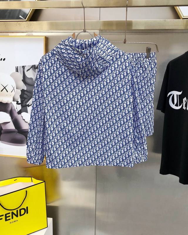 Dior 2025 summer sun protection clothing shorts set, overseas counter synchronization light and high-quality fabrics luxury high-end customization anyone can easily control, customer supply imported poly fiber fabric soft and comfortable style sweat-absorbent breathable, foreign trade company order, N domestic first-line OEM factory P production, customized high-density fabric, water-resistant and unchanging, luxurious upper body looks young, summer street fashion sun protection must-have. Size: M ~ Xxxl. L wear 175 140 catties order report height and weight