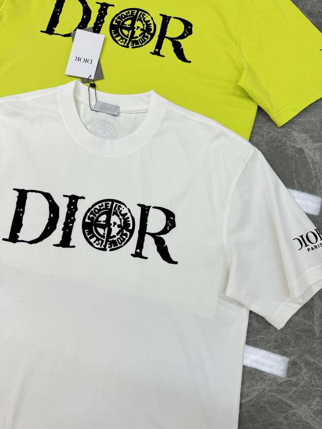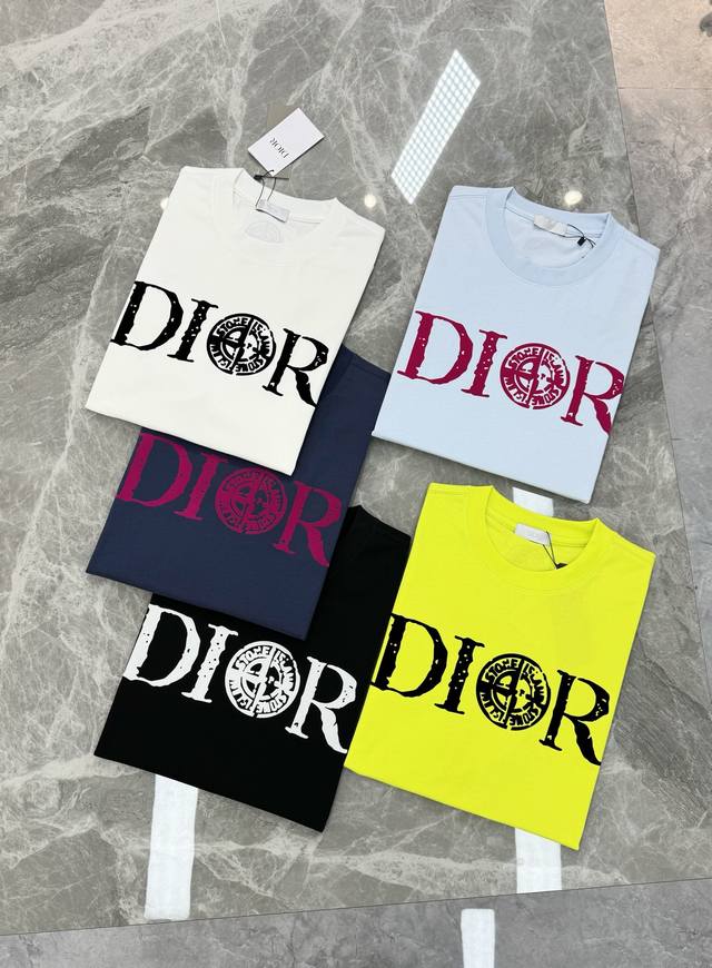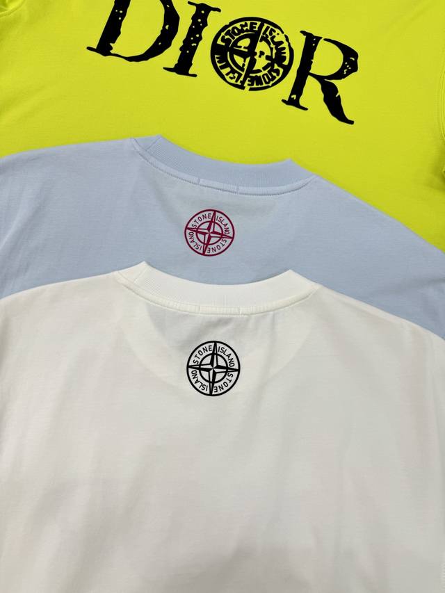 Dio*R Dior 25S new couple's round neck T-shirt! Stone Island co-branded model. Unisex style! 3D letter print on the chest. Letter graphics on the cuffs and back are matched with heat transfer. 230g selected 100% cotton texture. The cotton is rich and elastic. Adhering to the pursuit of detail, the pattern is also brand new! Full, clear and textured. The fabric is close-fitting, comfortable and breathable! Whether worn alone or as a base layer, it is a must-have item! Don't miss it. Colors: black, dark blue, sky blue, fluorescent green, white. Sizes: S-3Xl with a slightly expanded version! 175-145 kg recommended L