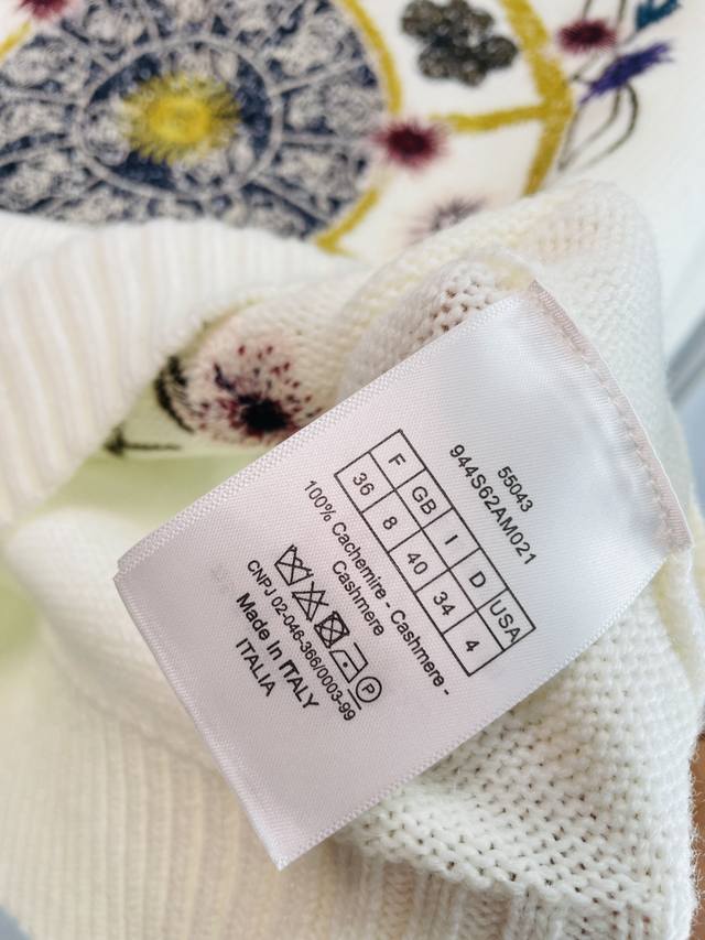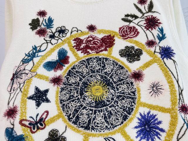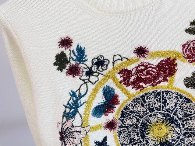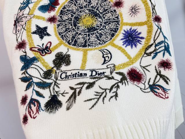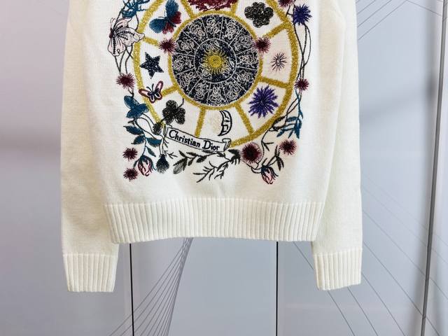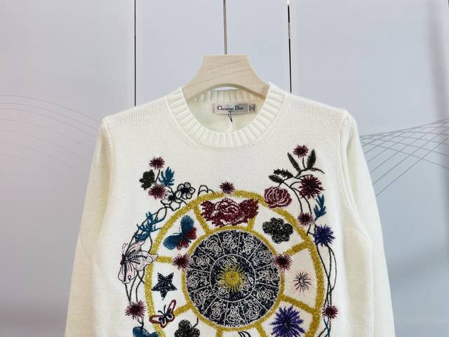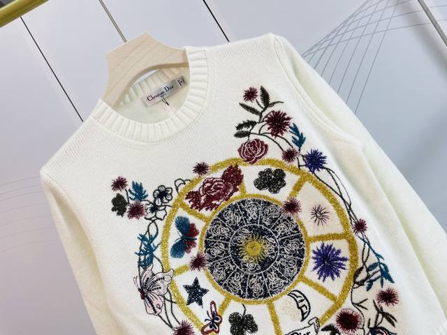 Dior&Dior new heavy embroidery floral five-pointed star pattern pullover sweater