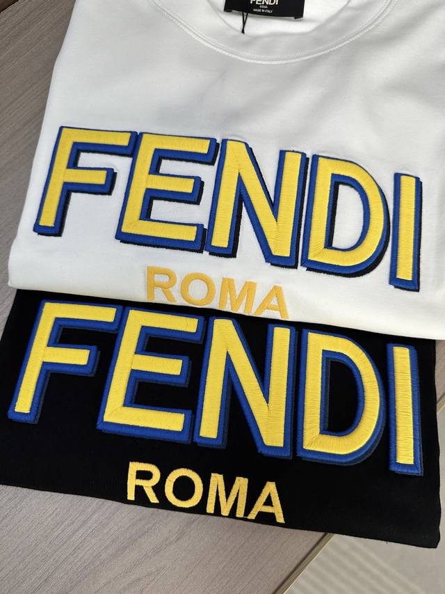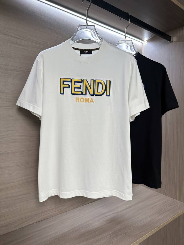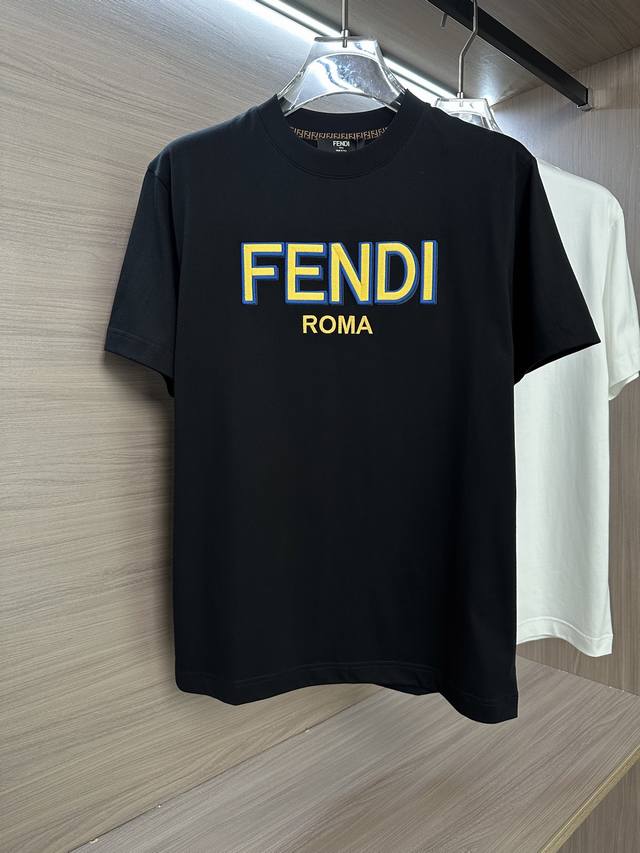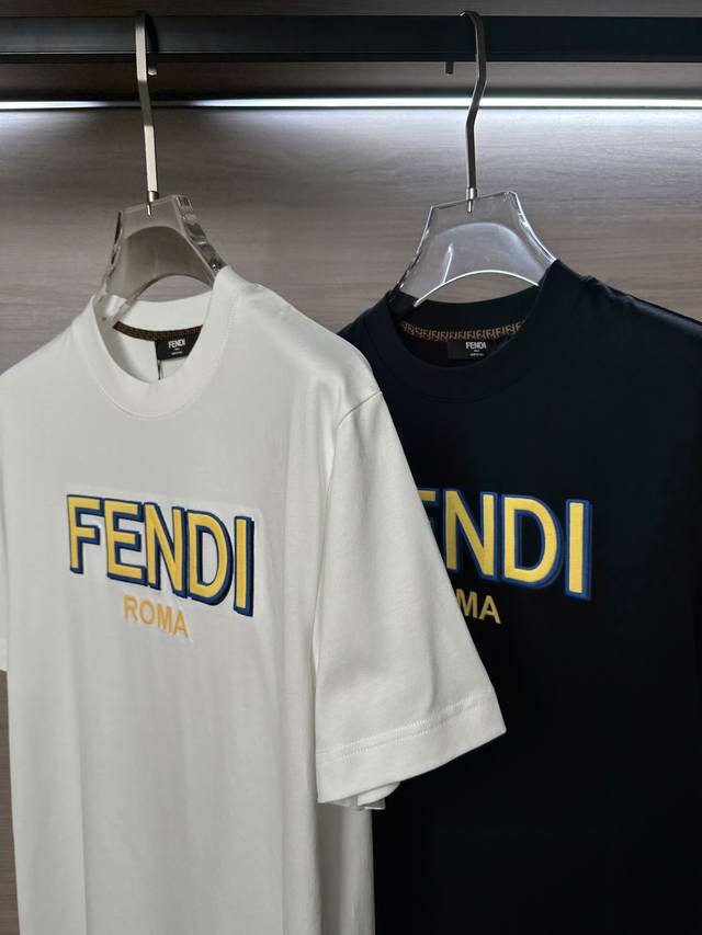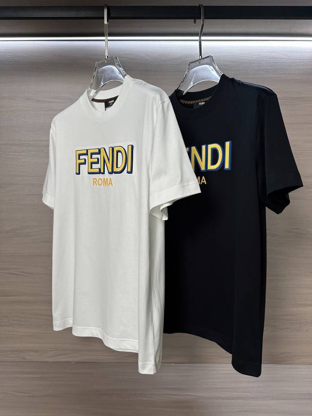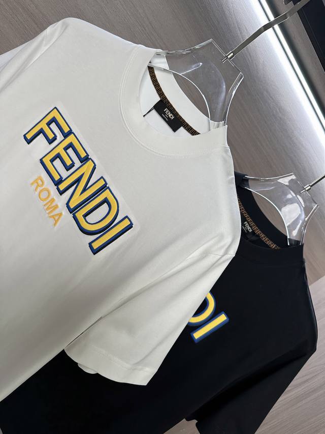 Fd Fendi 25Ss Summer latest short-sleeved round neck T-shirt, high-end custom design, avant-garde fashion! Brand letter logo, heavy craftsmanship design, high-end custom 240g fabric, soft touch, comfortable to wear, counter-level exquisite stitching.
