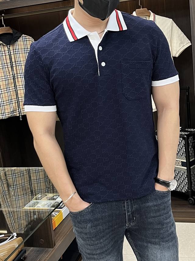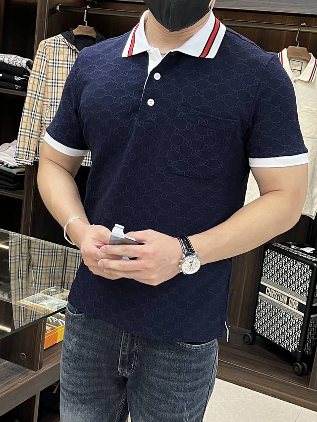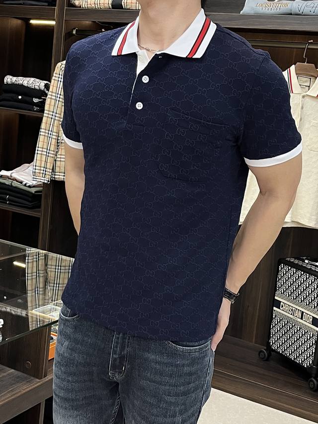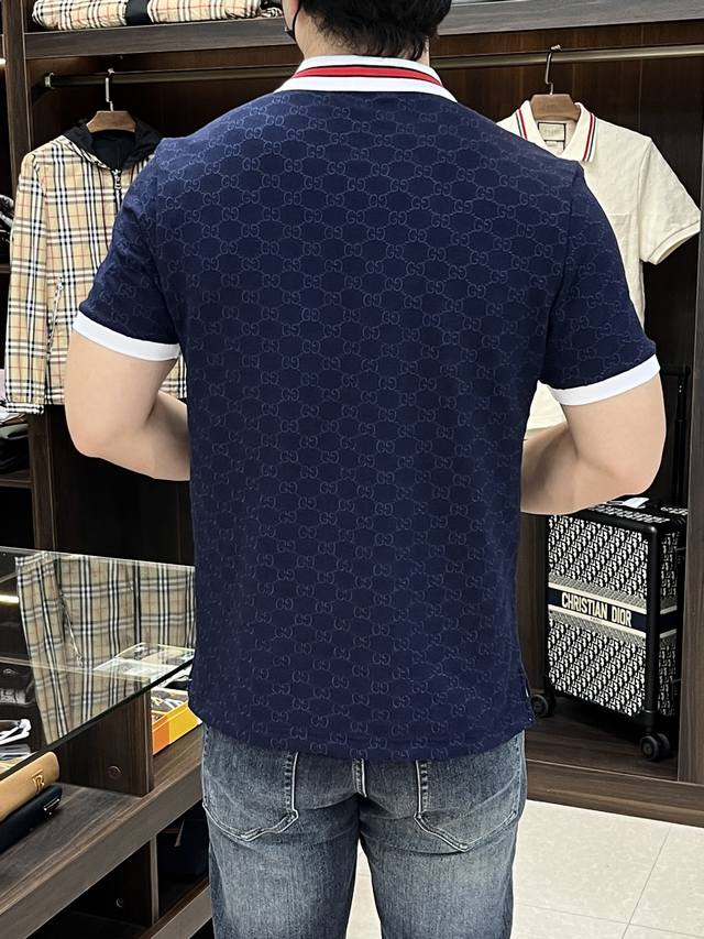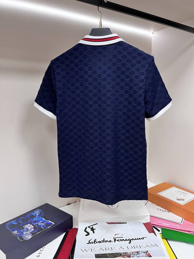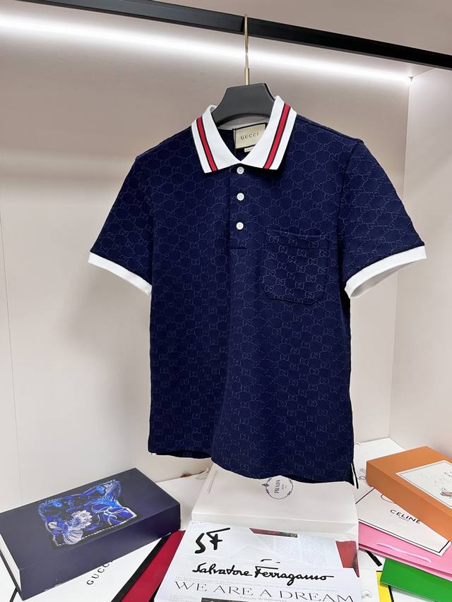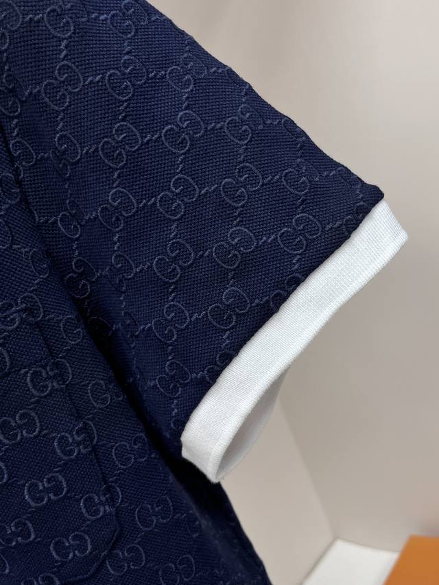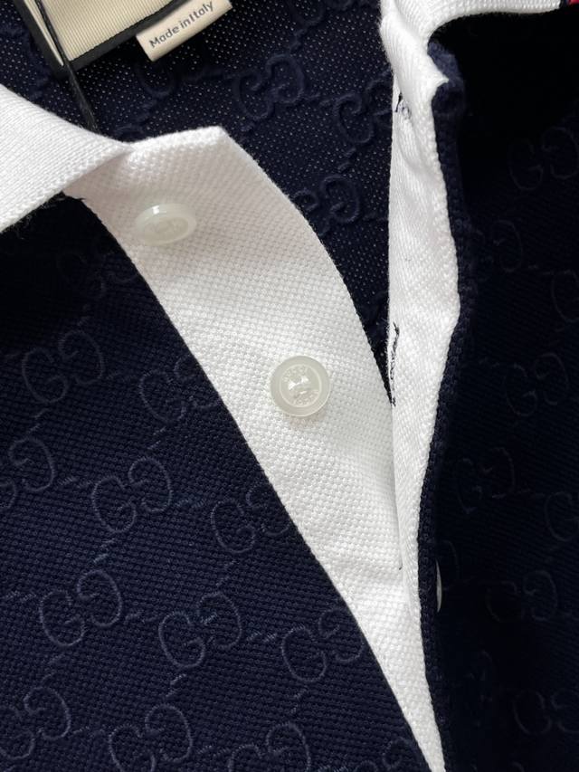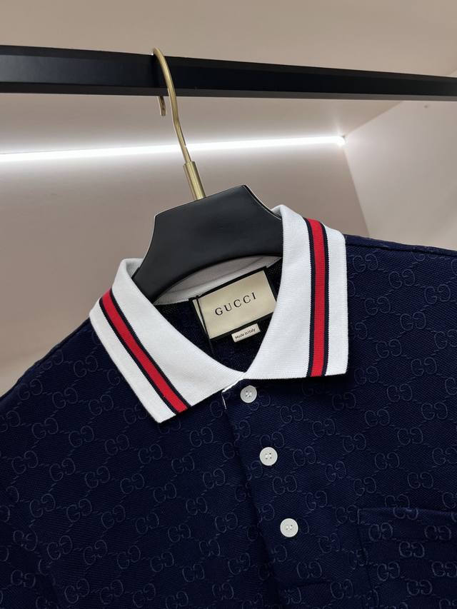 features the new Gucci 25Ss all-over Gg jacquard embroidered in five colors. This polo shirt is crafted from stretch cotton piqu