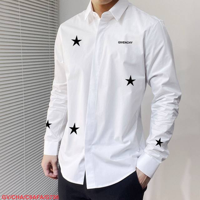 G735 Gv Givenchy counters are available for sale at the same time, fashionable and casual lapel long-sleeved shirt, imported original technology fabrics, extremely complex workmanship, the only channel that can do purchasing level, classic printing craft letter logo, extremely high grade, comfortable and versatile, handsome and stylish on the body, size: 38-42 095
