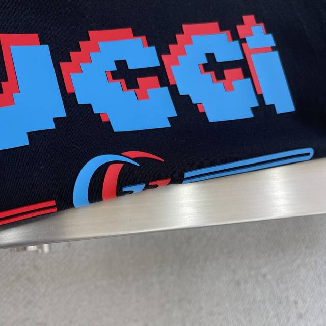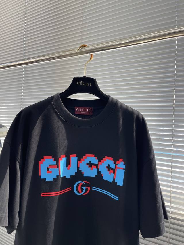 Gucc 25Ss New style overlapping letter T-shirt Double G logo Overall silicone printing shows high-end shoulder shoulder tape 280g pure cotton fabric comfortable and breathable