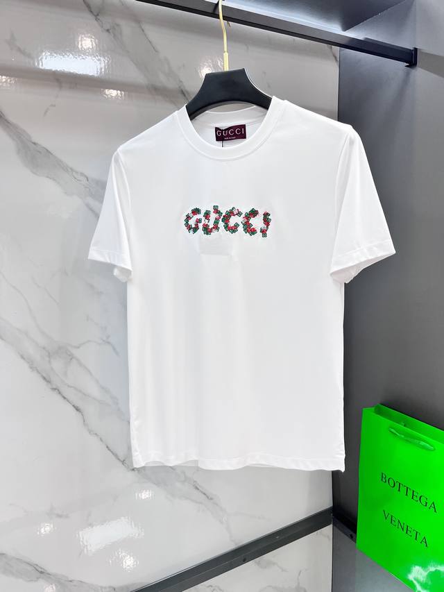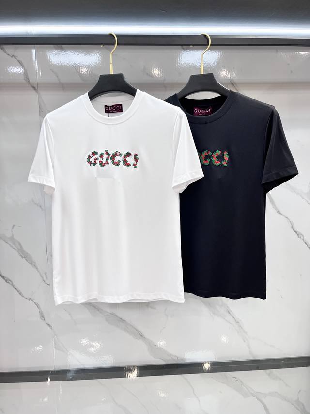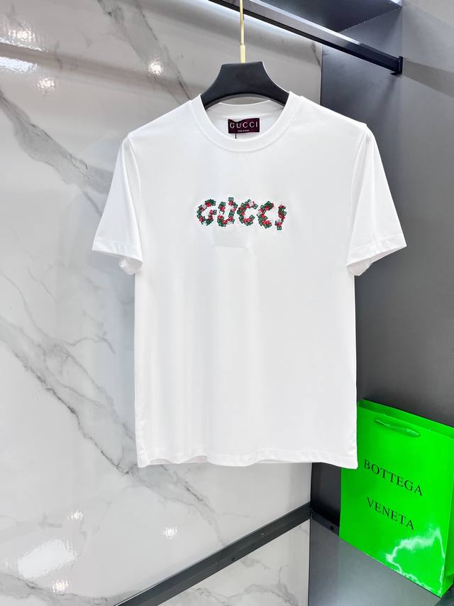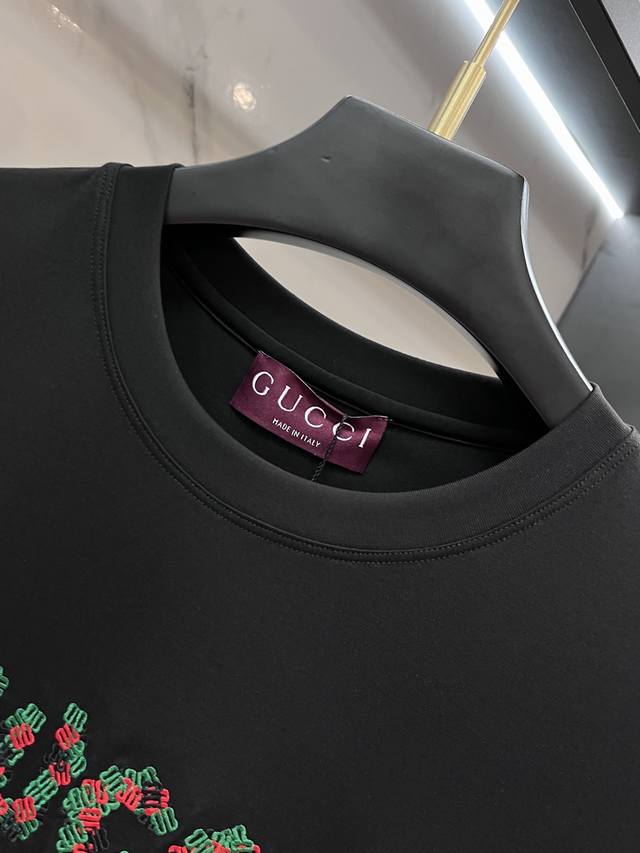 Gucci 2025Ss spring and summer boutique short-sleeved T-shirt official website synchronization High-end quality customized top mercerized fabrics, top factory 1:1 production, fashion brand heavy craftsmanship Logo design, soft and delicate feel, skin-friendly and comfortable to wear, versatile and casual upper body is very good, handsome and fashionable men must-have