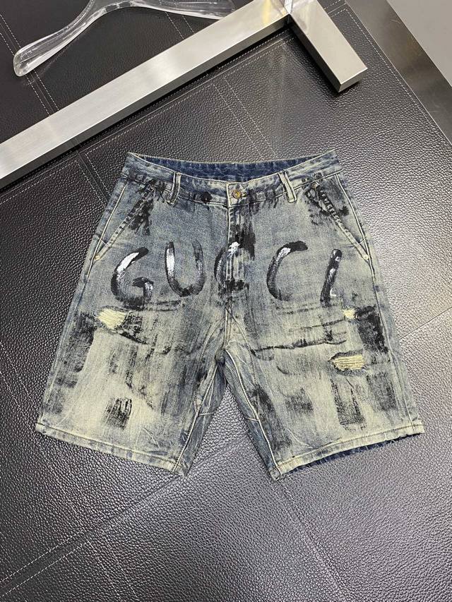 Gucci exclusive new high-end version of casual denim shorts! Custom-made fabrics are breathable and comfortable, with impeccable details and brand elements, reflecting high quality. Delicate and soft to the touch! Casual cut, great fit! Size: 29-38 No 35