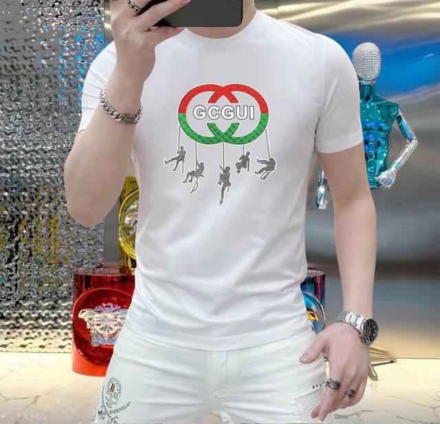 Gucci makes your skin feel extremely gentle and comfortable this summer! The new men's summer round-neck silk cotton short-sleeved T-shirt is now elegantly launched!