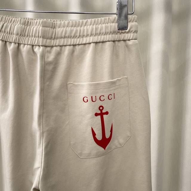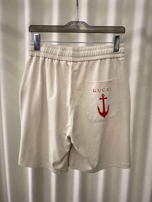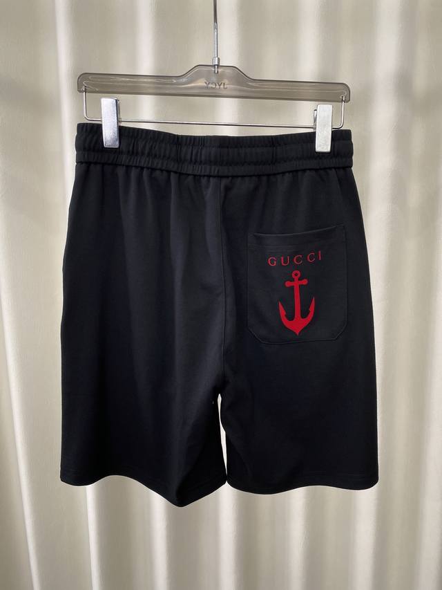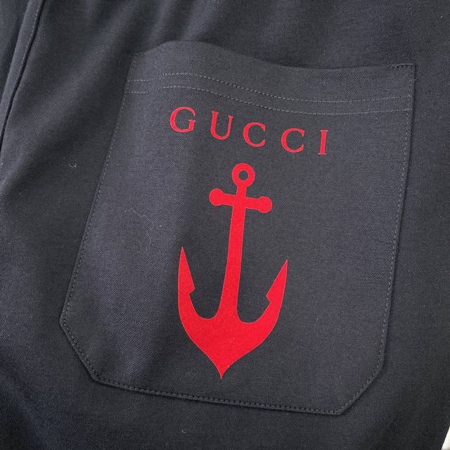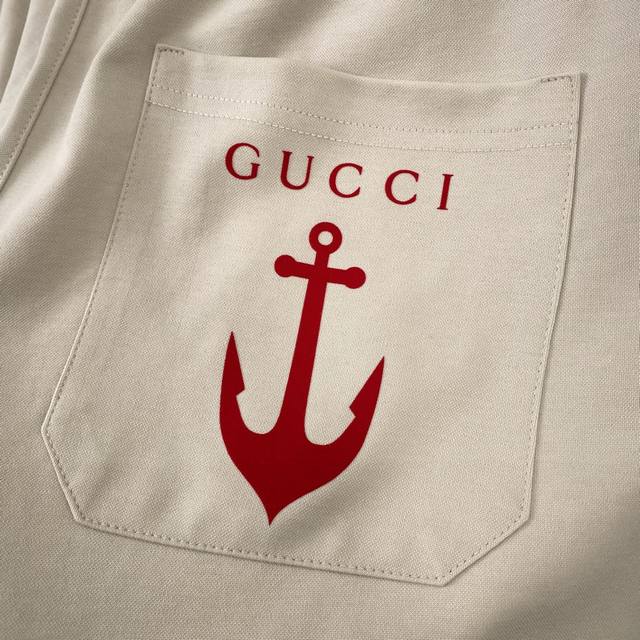 Gucci.25 Summer new men's anchor flocking print logo ice oxygen cotton casual sh