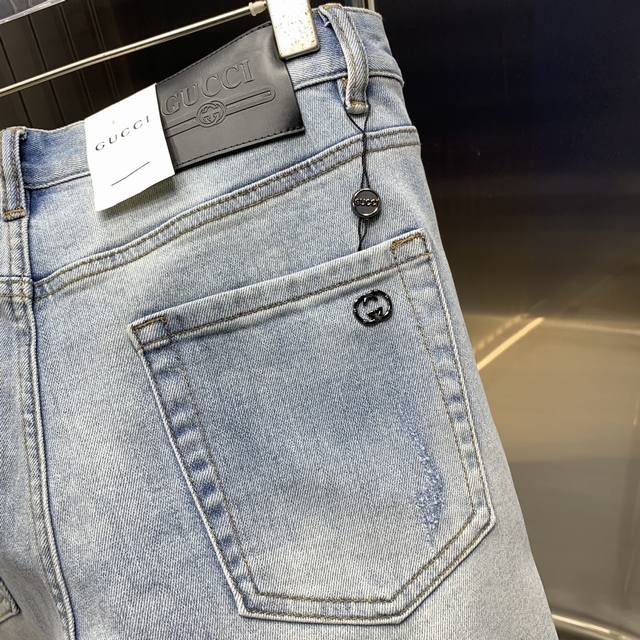 Gucci's new 2025 men's jeans feature stretchy fabric. Exclusively available on the official website, these stylish, elegant, and meticulously crafted jeans are crafted using a natural yeast wash process. They feature premium imported heavyweight denim with signature hardware and genuine leather patches, creating a truly stylish look. Sizes: 28-38, shipped the next day.