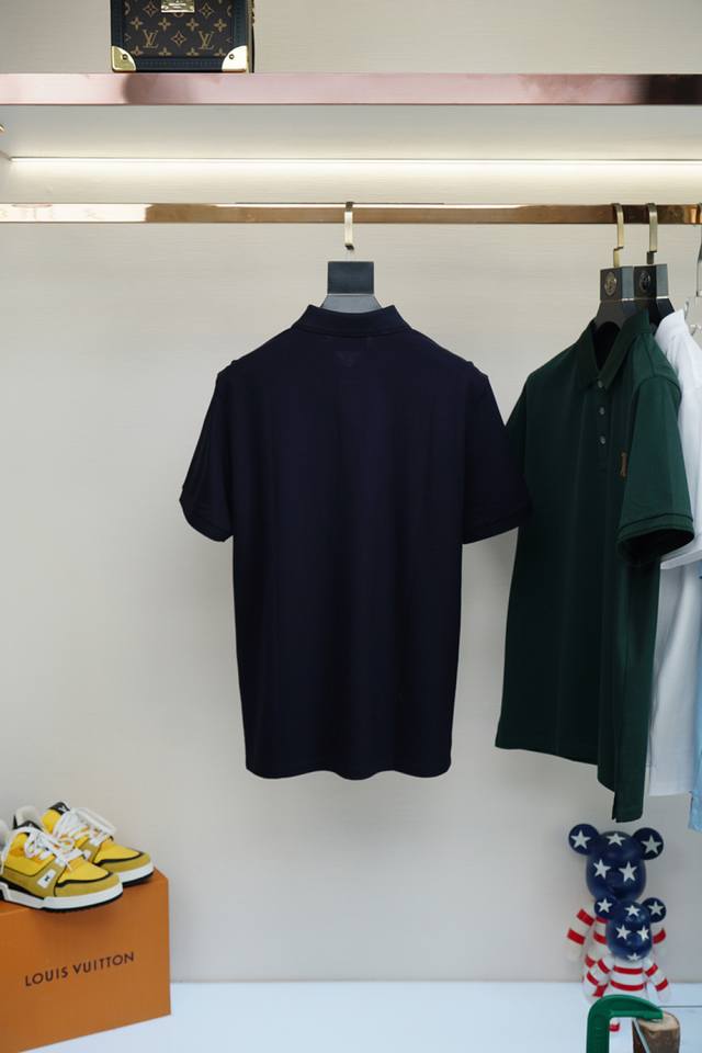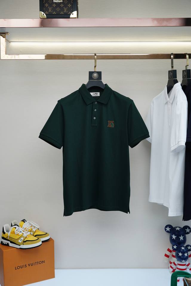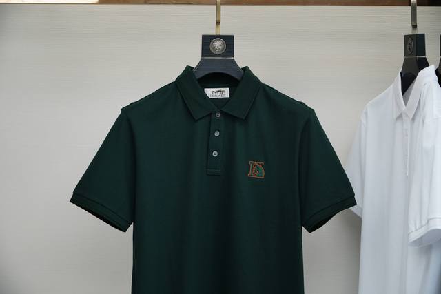 Hermes 2025Ss new summer H men's lapel T-shirt The pattern on the chest adopts i