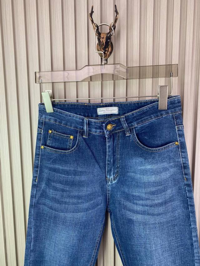 High-end Ferragamo men's jeans collection, new brand styles for fall 2025, made with a one-to-one manufacturing process, a slim, straight-leg design, and comfortable, breathable stretch fabric! Available in sizes 29-40.